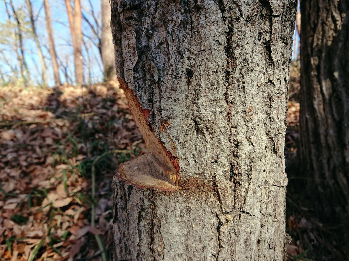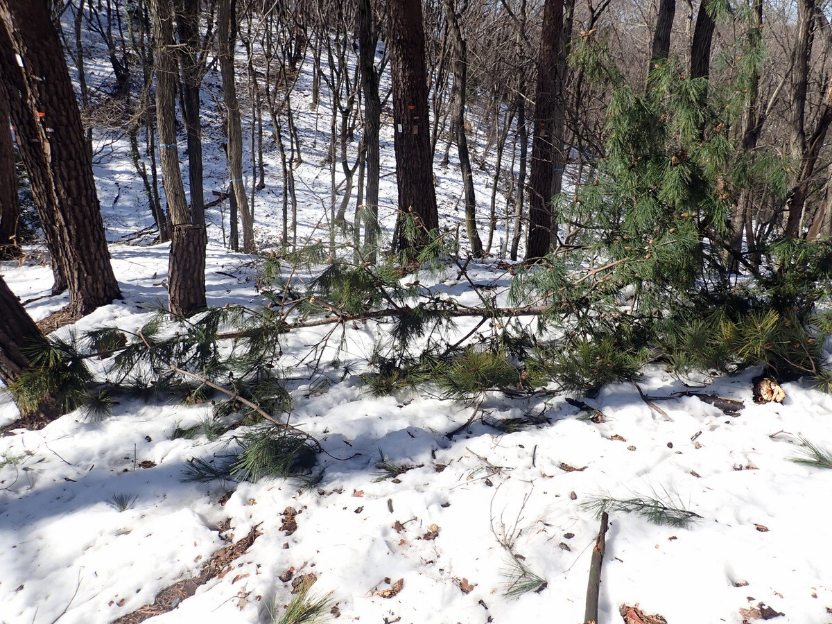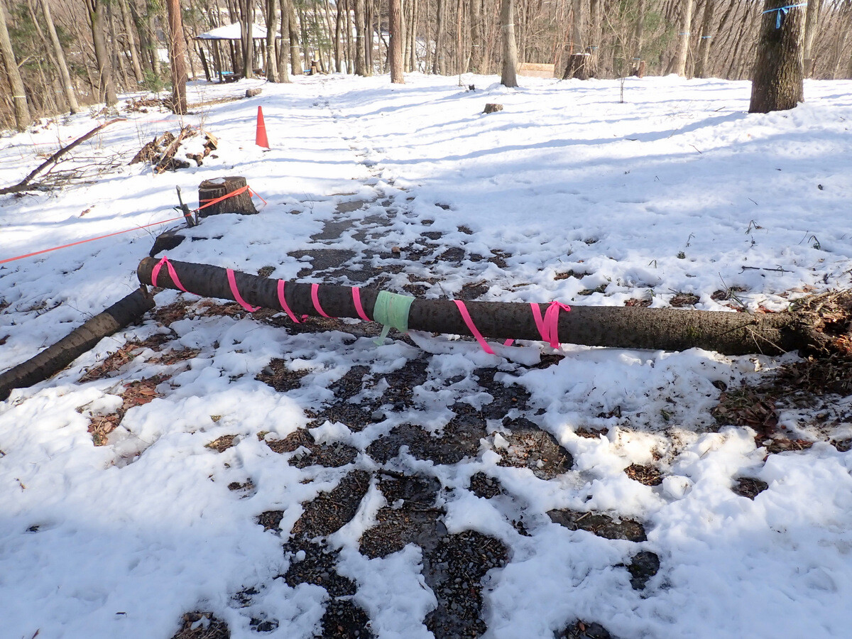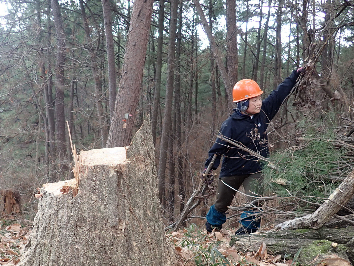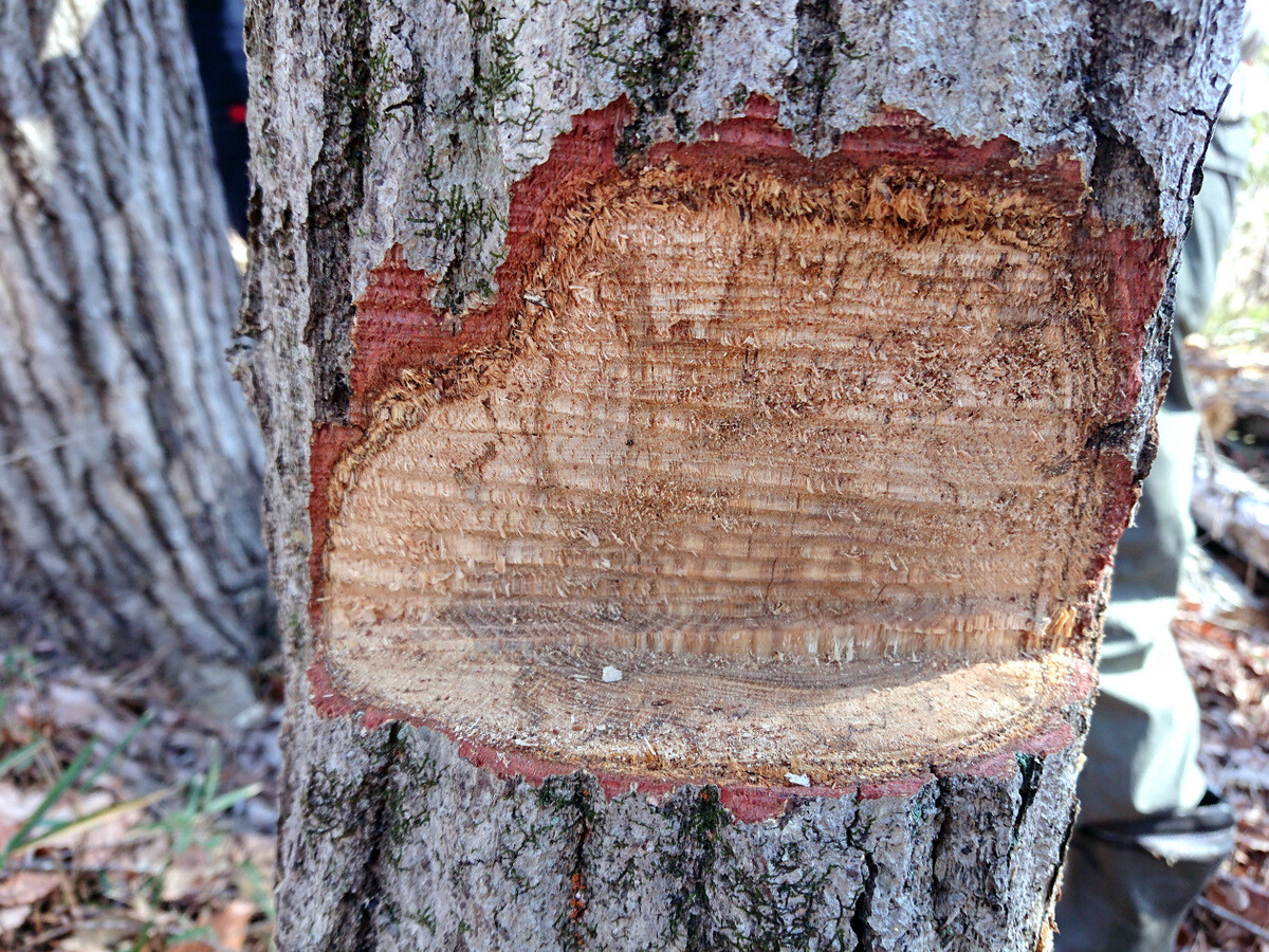 森林の脆弱性 根返り:根こそぎ倒れ地面がめくれる
