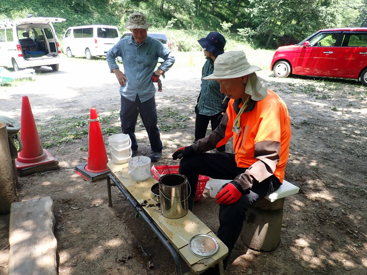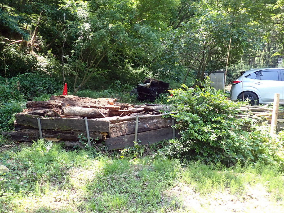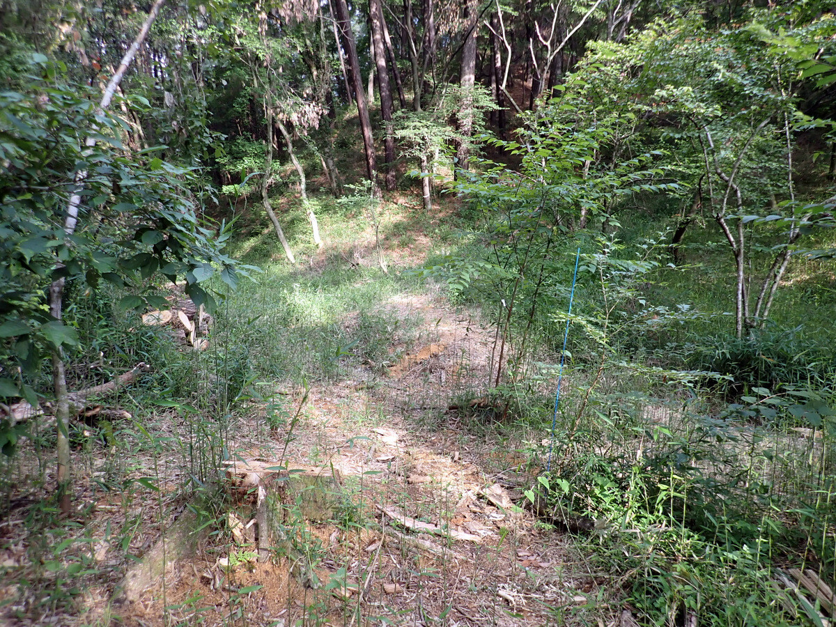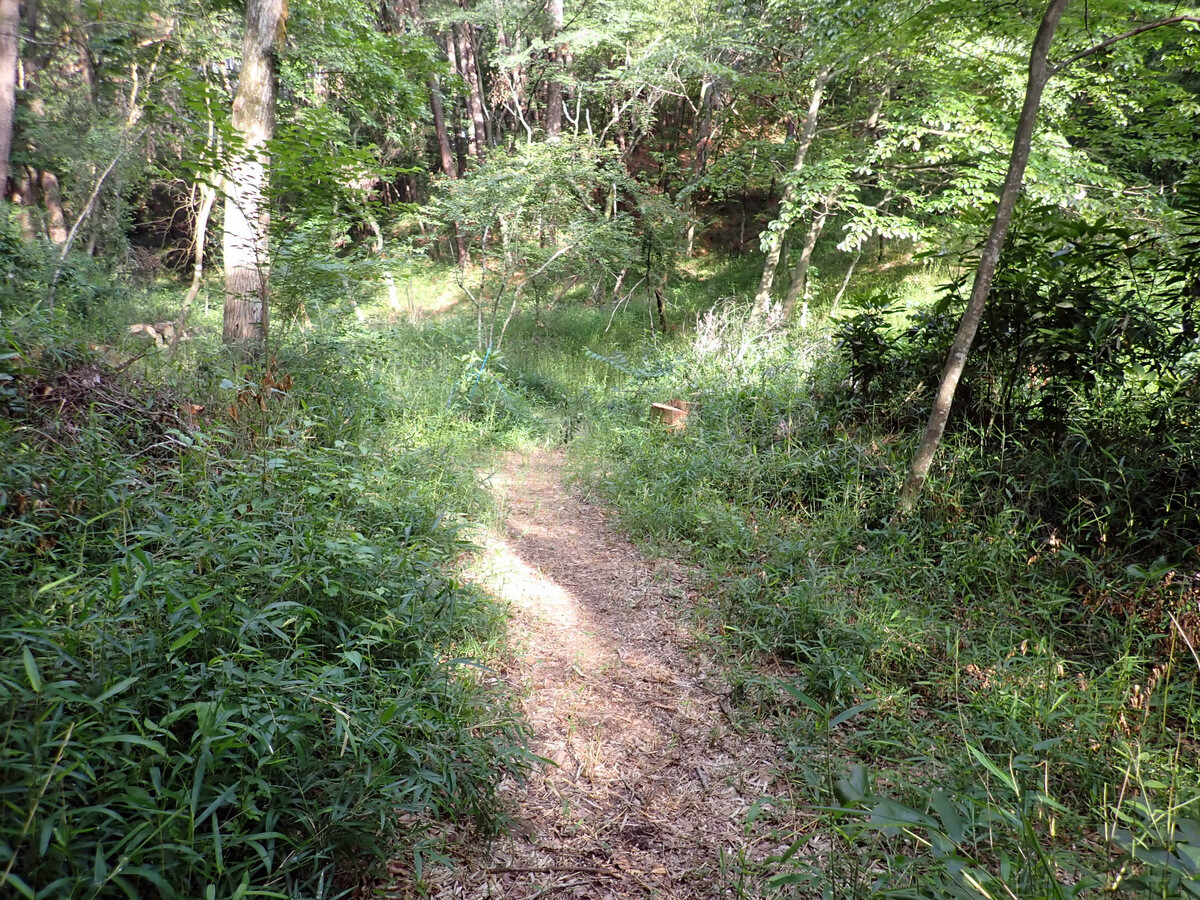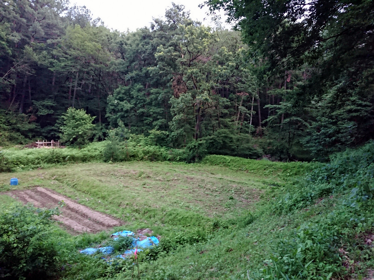 作業道と岩殿F地区との間の斜面を覆いつくしているカナムグラ(アサ科)の抜き取りを始めました。一年生のつる植物で雌雄異株。キタテハの幼虫の食草です。