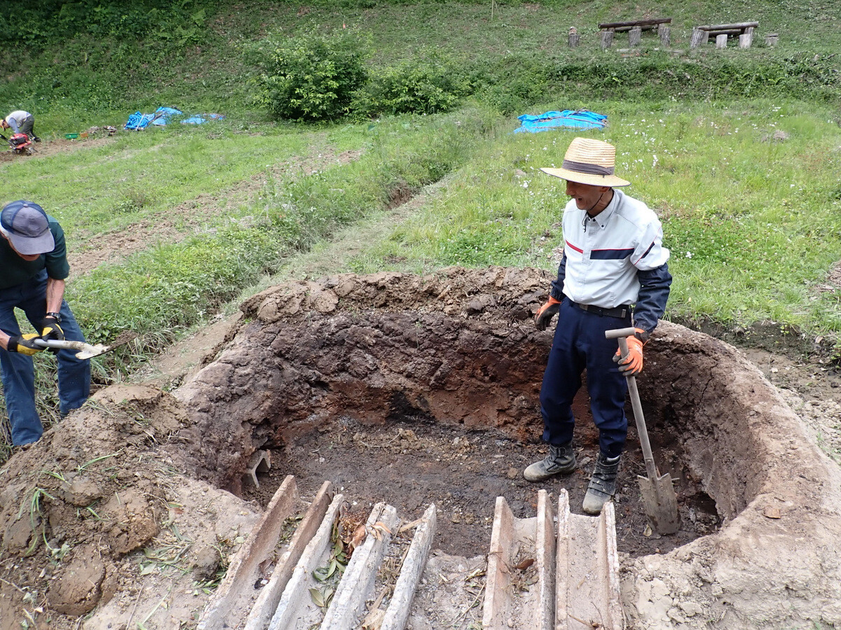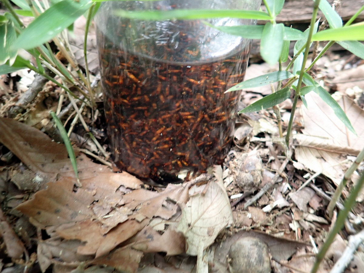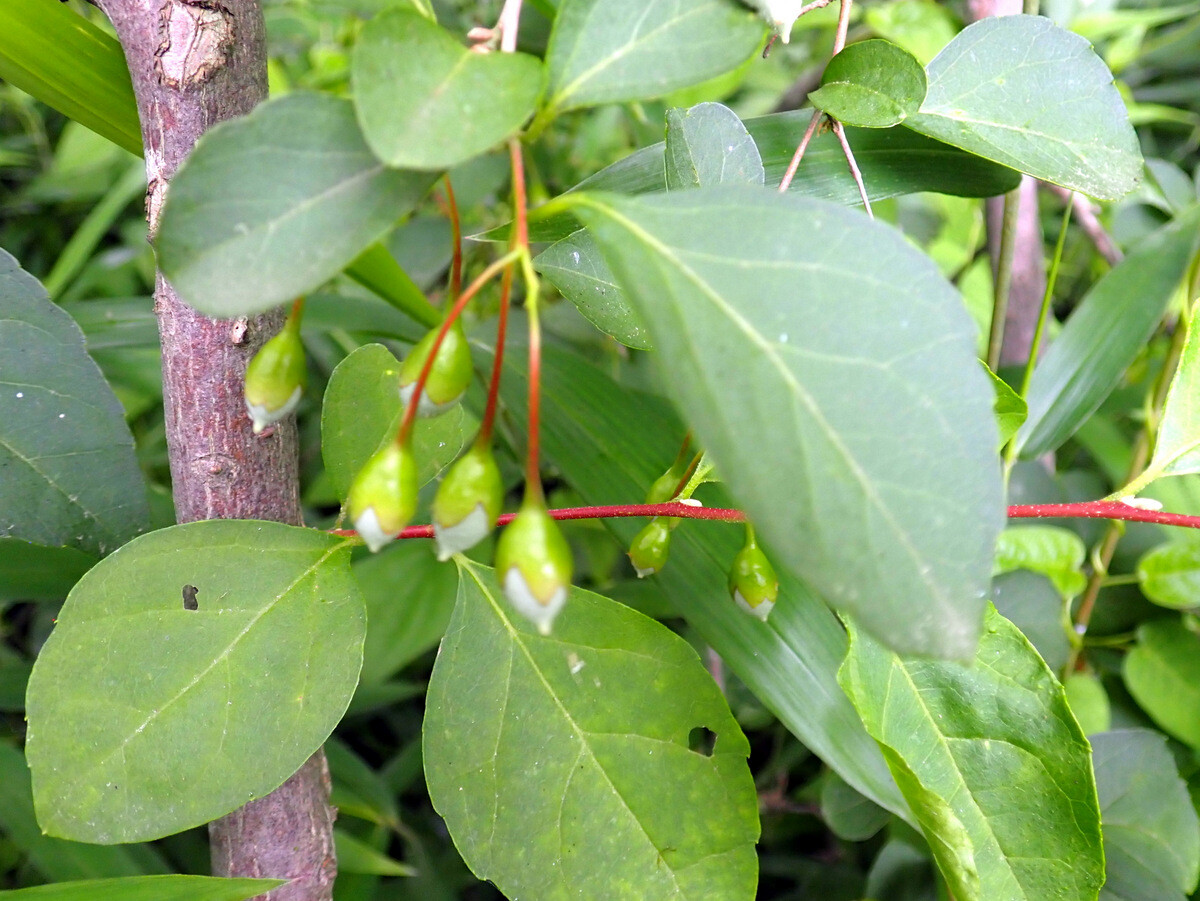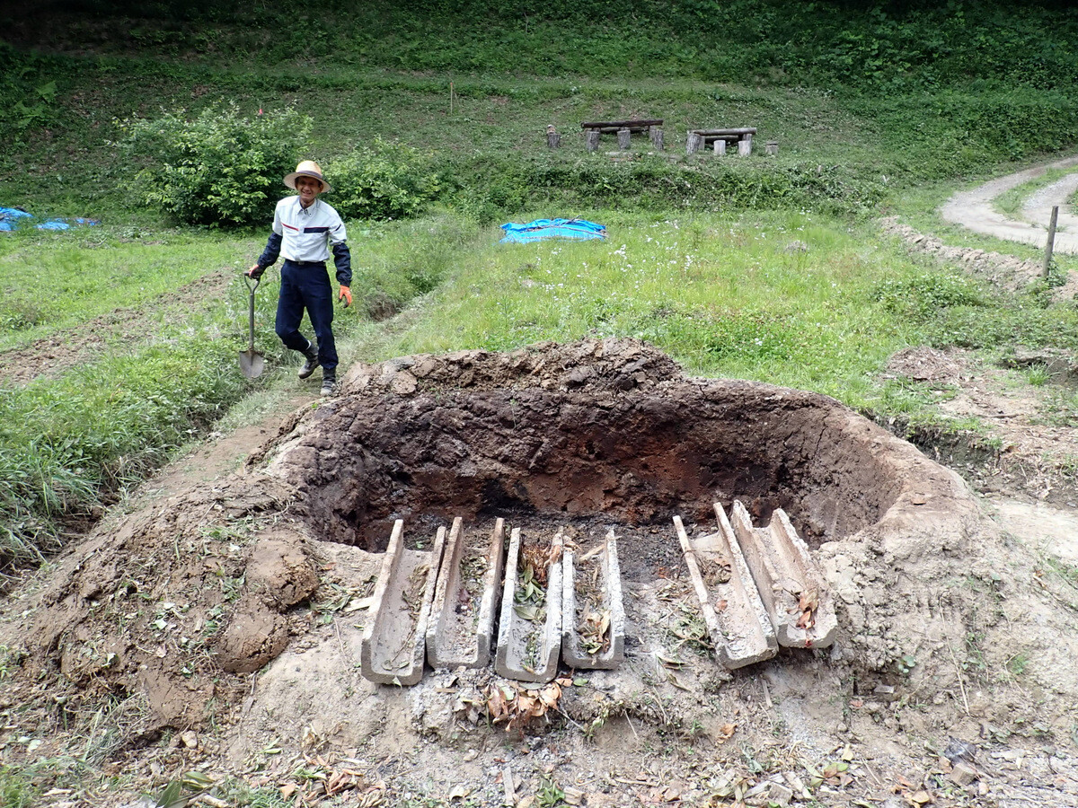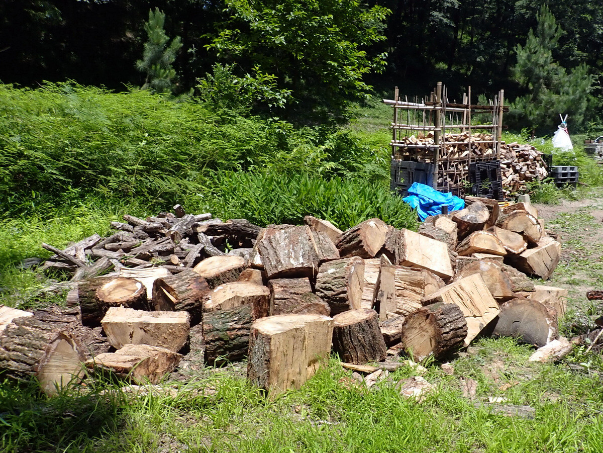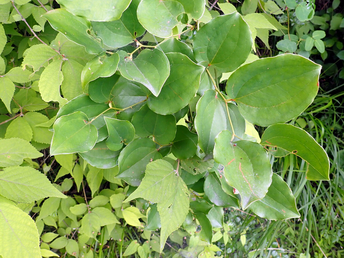 作業道と岩殿F地区との間の斜面を覆いつくしているカナムグラ(アサ科)の抜き取りを始めました。一年生のつる植物で雌雄異株。キタテハの幼虫の食草です。