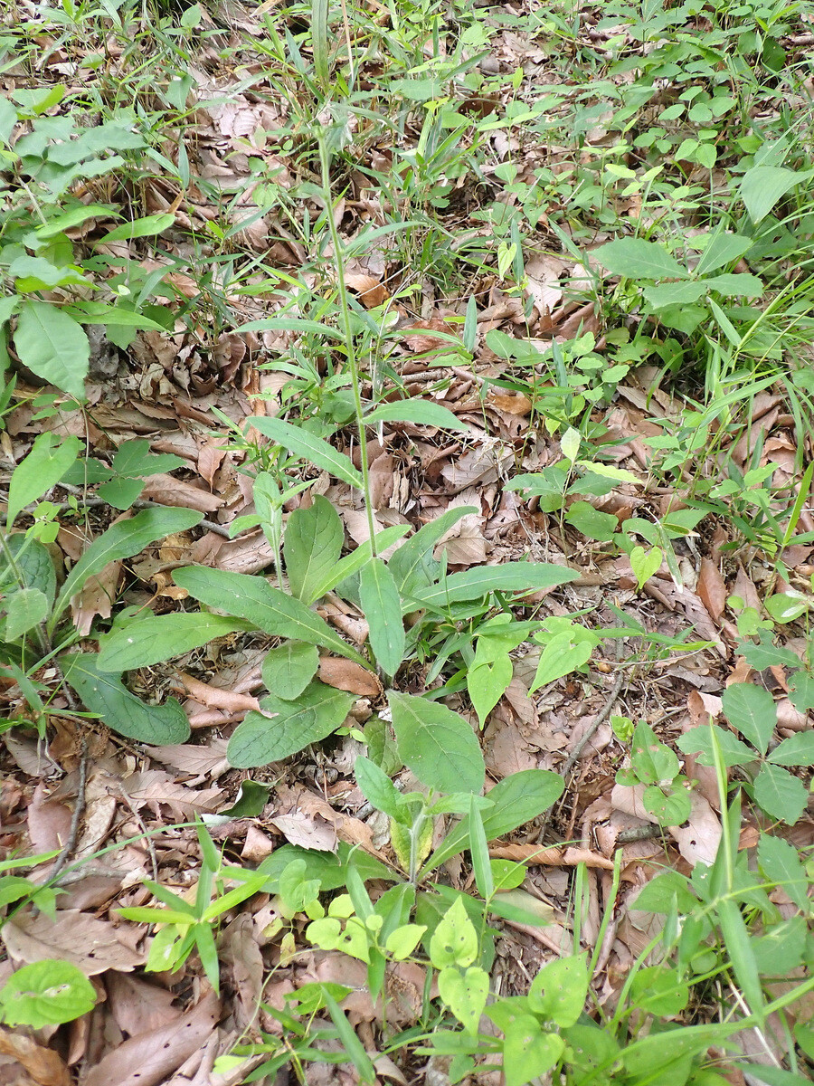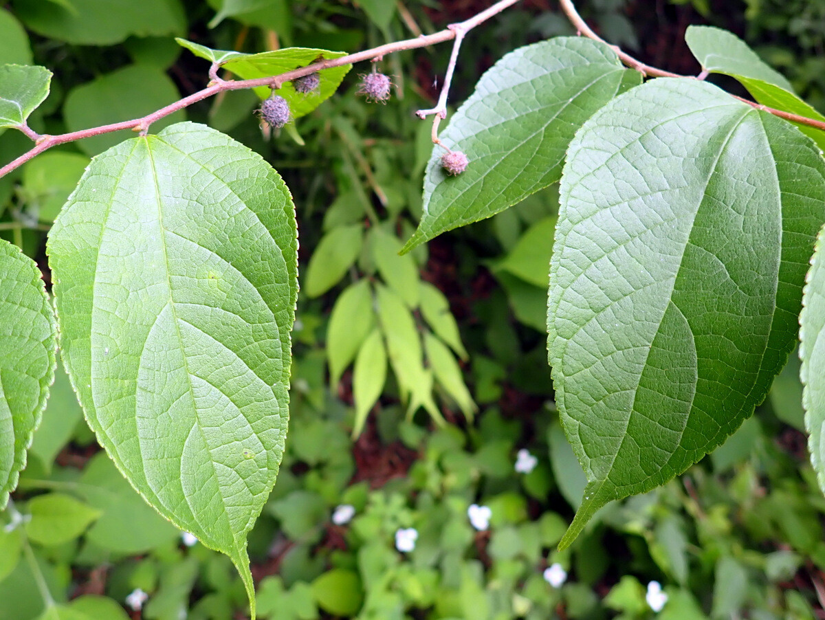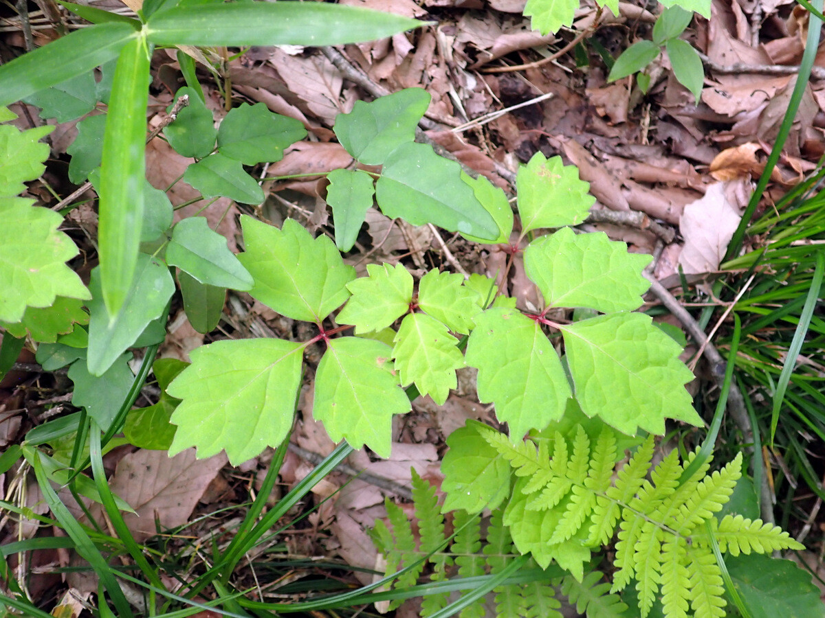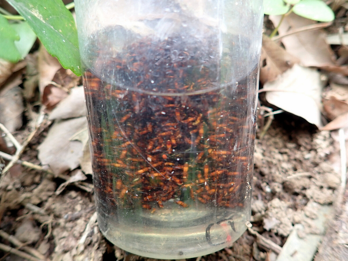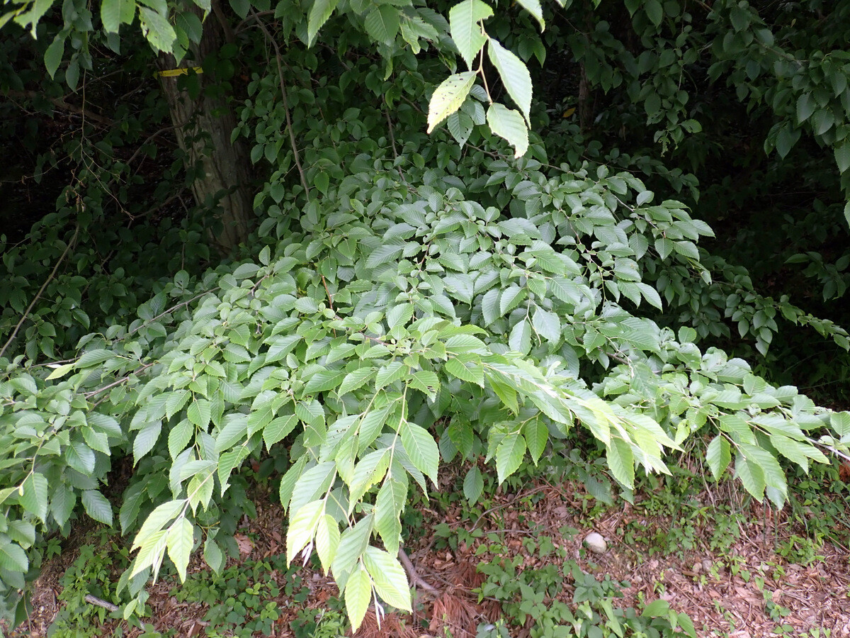 作業道と岩殿F地区との間の斜面を覆いつくしているカナムグラ(アサ科)の抜き取りを始めました。一年生のつる植物で雌雄異株。キタテハの幼虫の食草です。