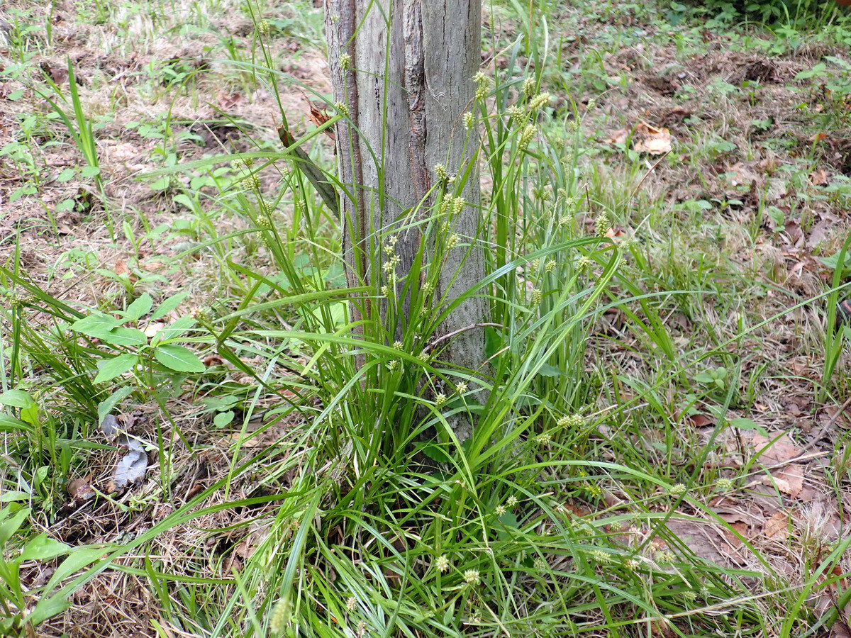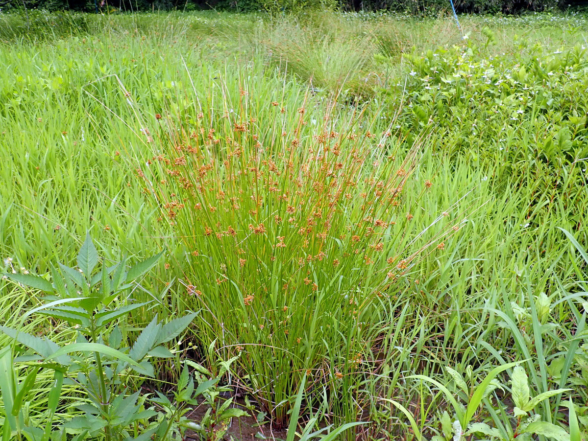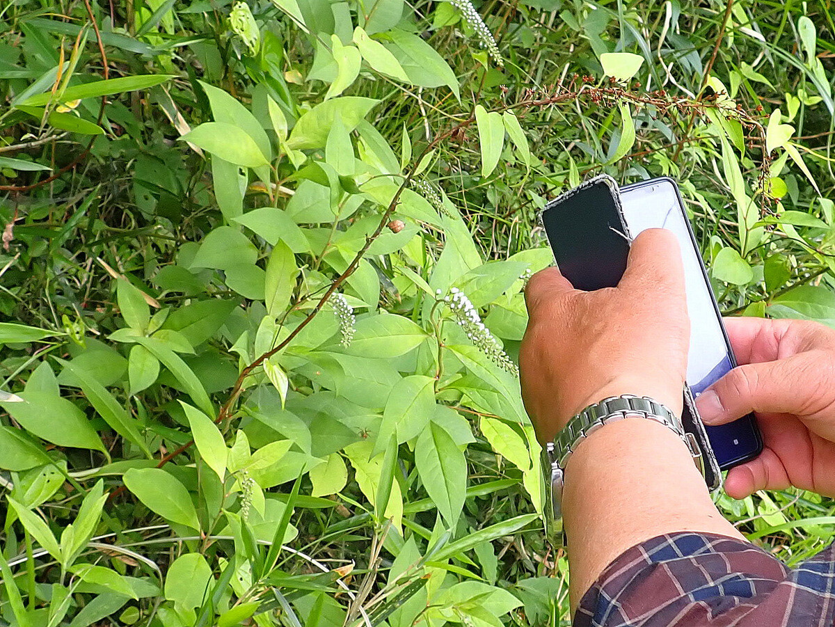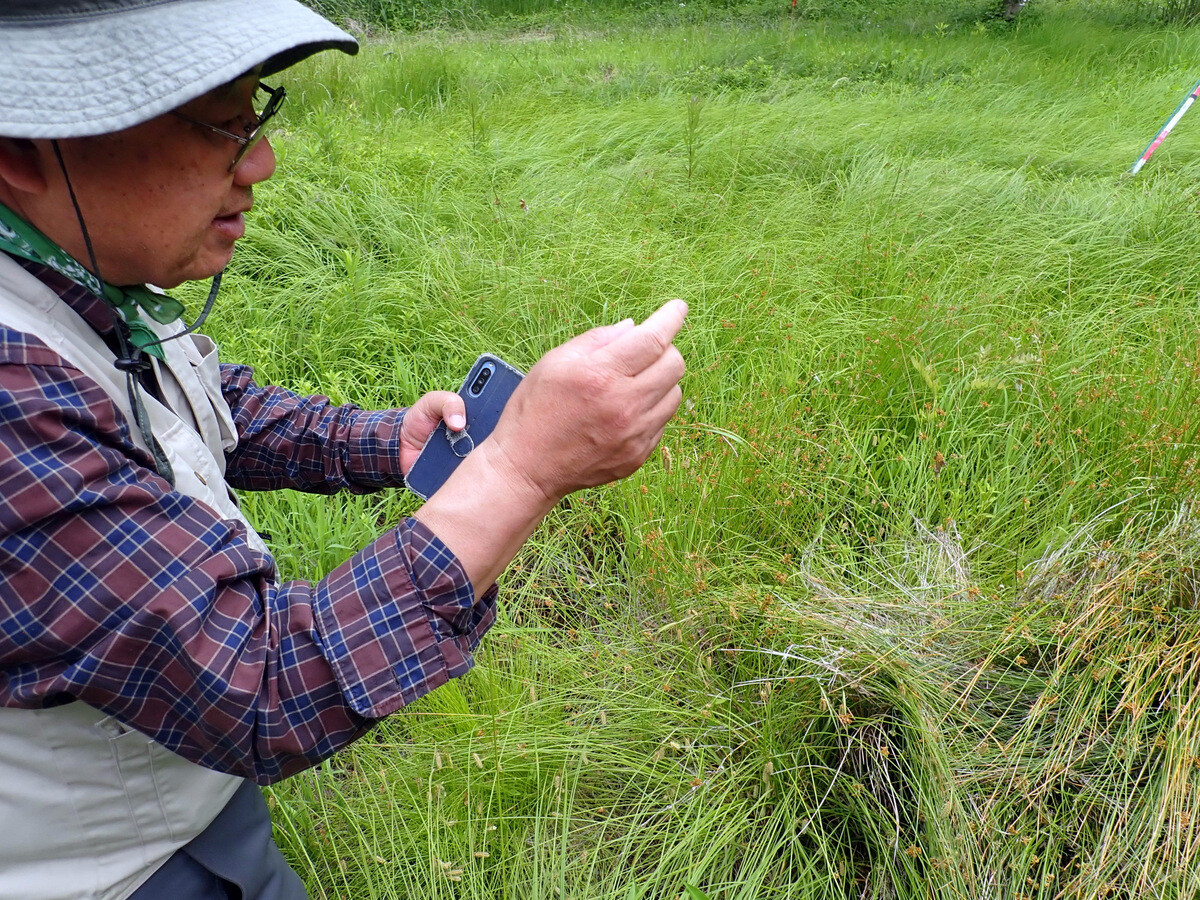 刈払いで行う場合は、カナムグラの草丈が、10~15㎝の高さになった時に、草削りなどを使って行います。この高さまで成長すると、「養分転換期」と言って、種子の養分を使い果たした段階になるためです。これを行った後に遅れて発生したり、再生が見られた時には、もう一度刈払いを行ってください。ただし、生育期の刈り取りは行いません。2~3年続ければおさまるでしょう。(『NPO法人緑地雑草科学研究所』)