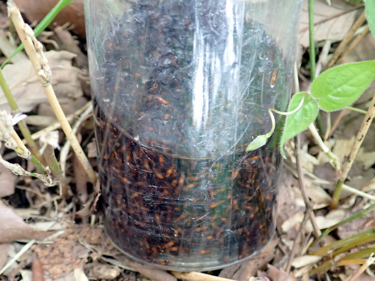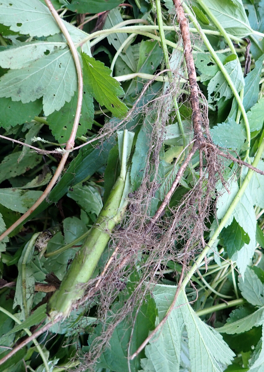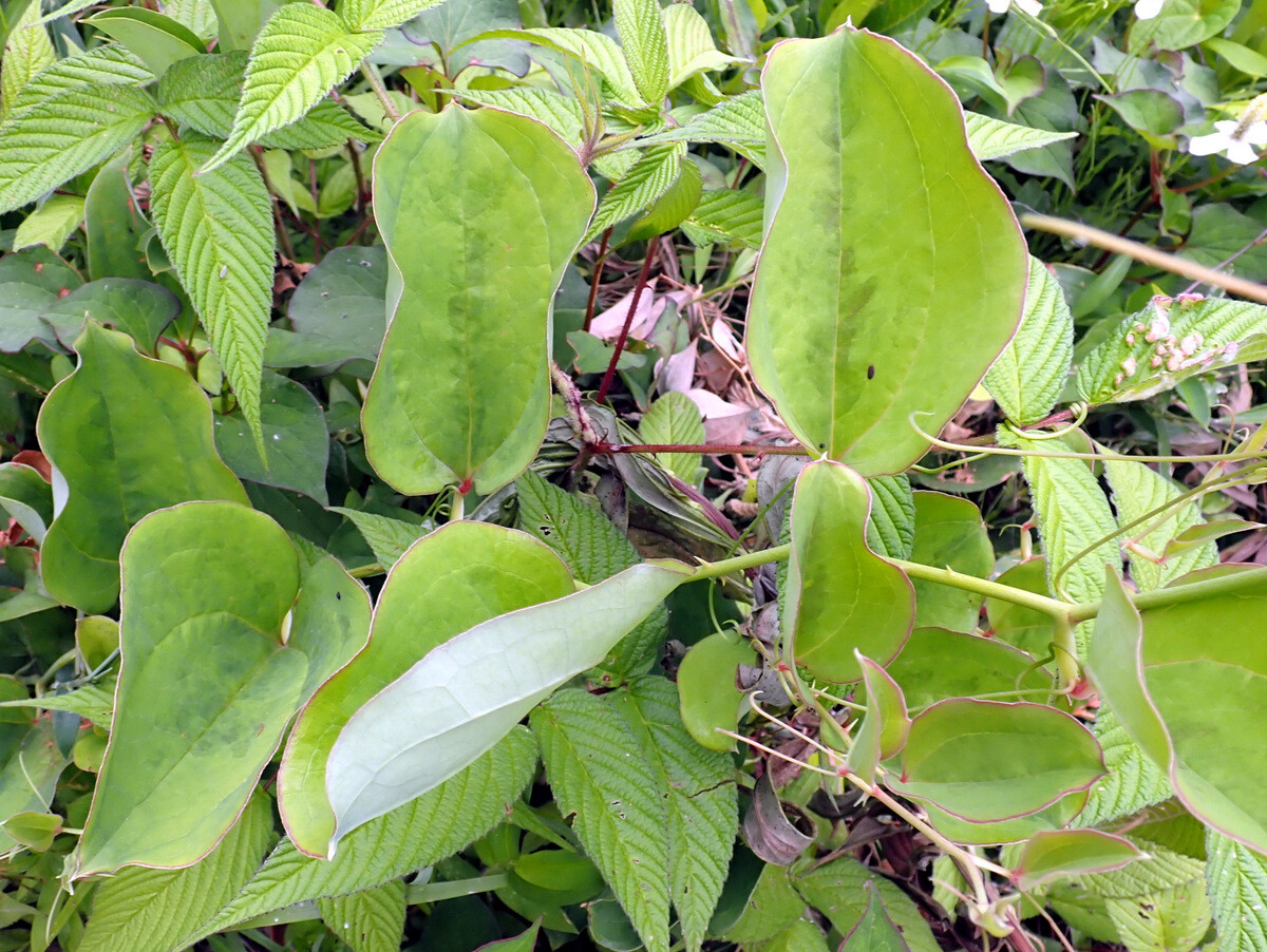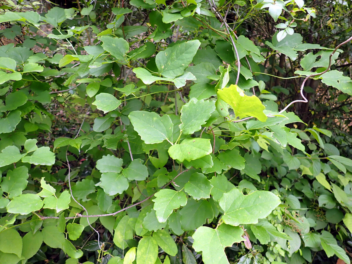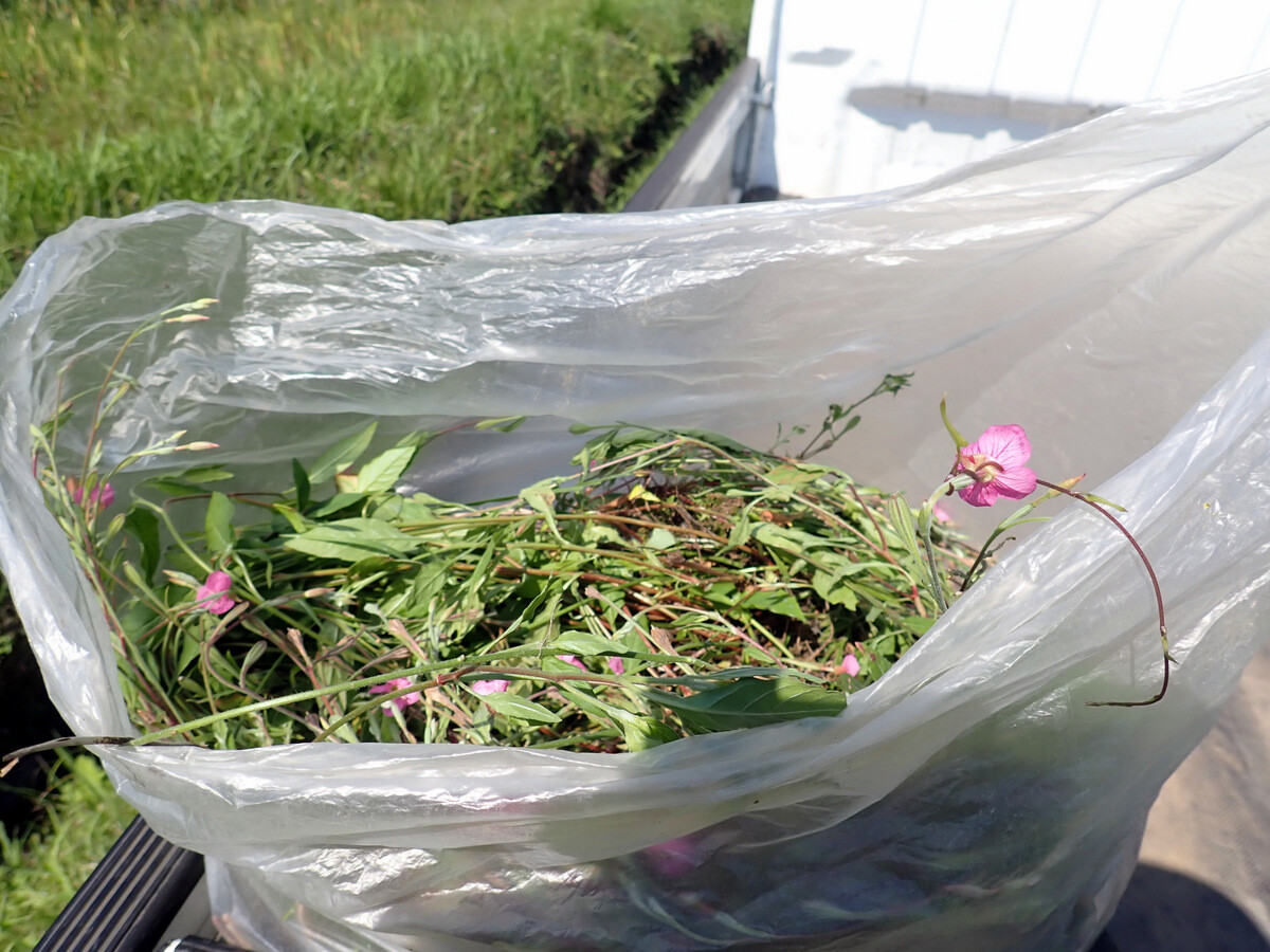 つるがまん延する前(4、5月頃)に摘み取って置ければよかったのですが遅れてしまいました。それでも花が咲く前に片づけてまえば花粉症対策にもなりますし、来年の発芽数を少しは抑えることもできそうです。棘で他の植物に絡みついているのでつるが途中で切れて、根まで抜けるのは稀でした。