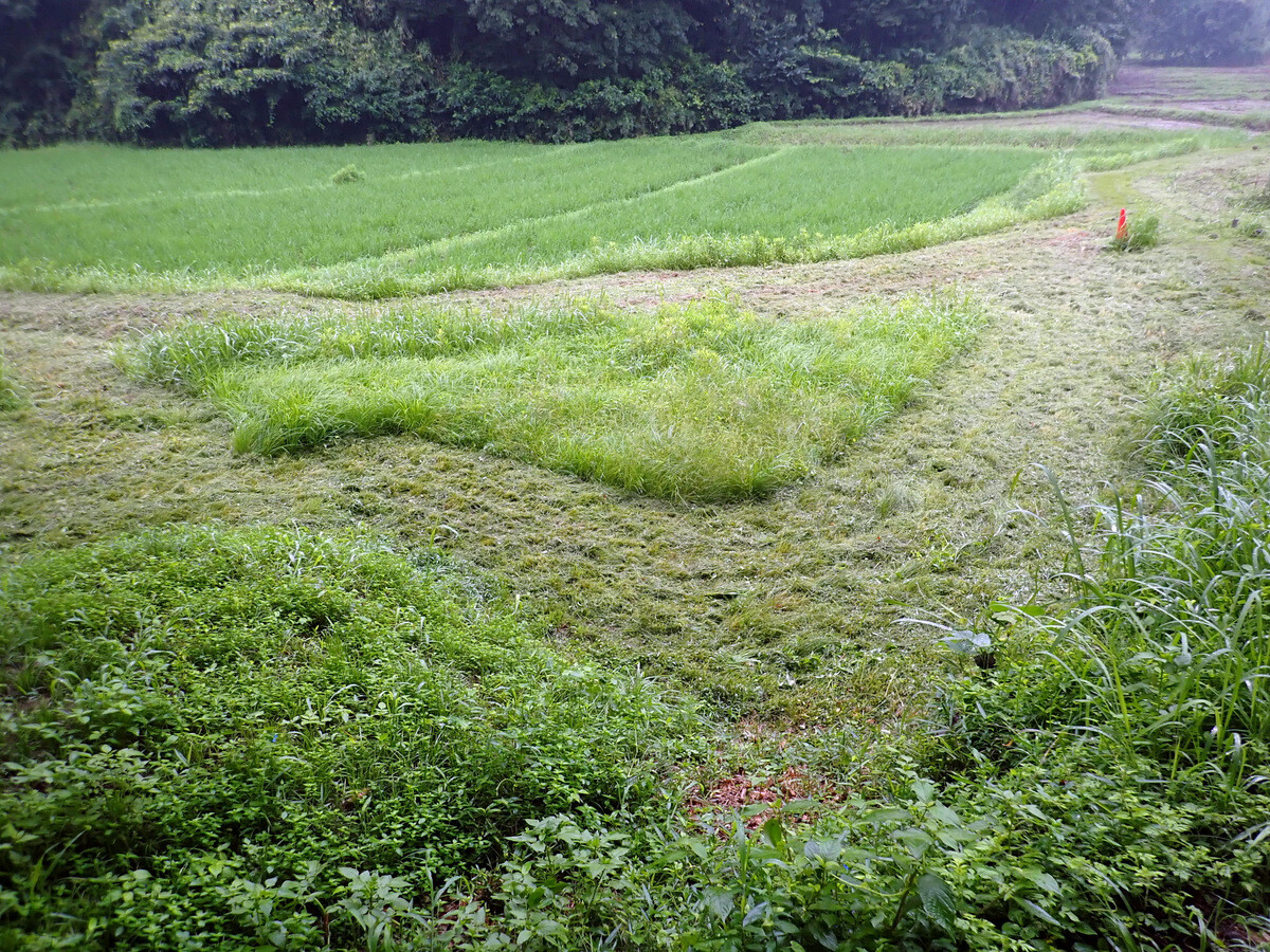 岩殿G地区の東側の荒廃・湿地化した放棄水田にトラクタを入れて、耕作放棄前の谷津の田んぼの区画がわかるようになっていました。10枚もあったようです。