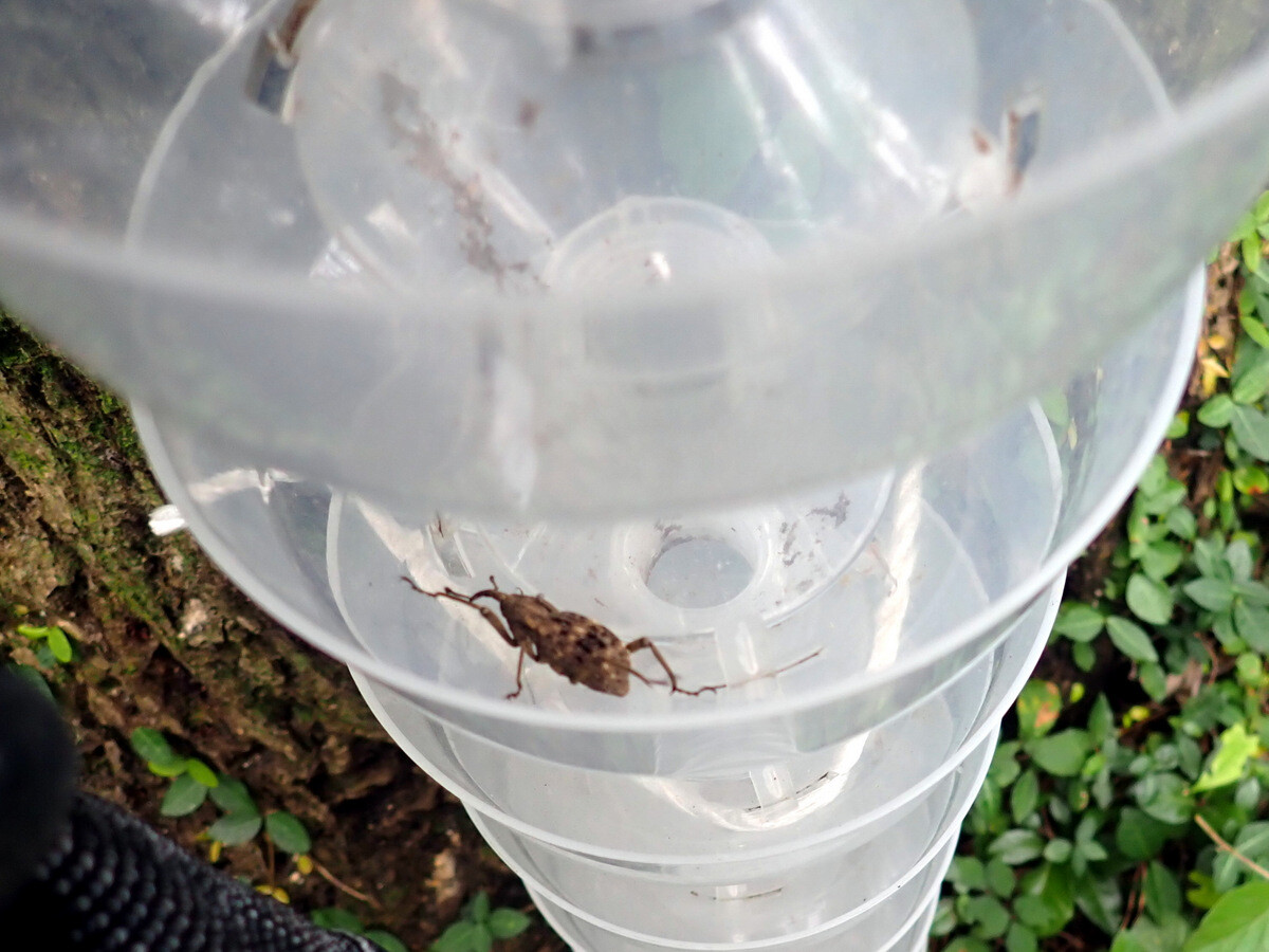 市民の森保全クラブ、6月14日以来初めての定例活動日です。参加者は新井さん、江原さん、金子さん、木谷さん、木庭さん、鳥取さん、新倉さん、細川さん、渡部さん、Hikizineの10名です。4グループでカシナガトラップにかかったカシノナガキクイムシを回収し、エタノールを交換しました。