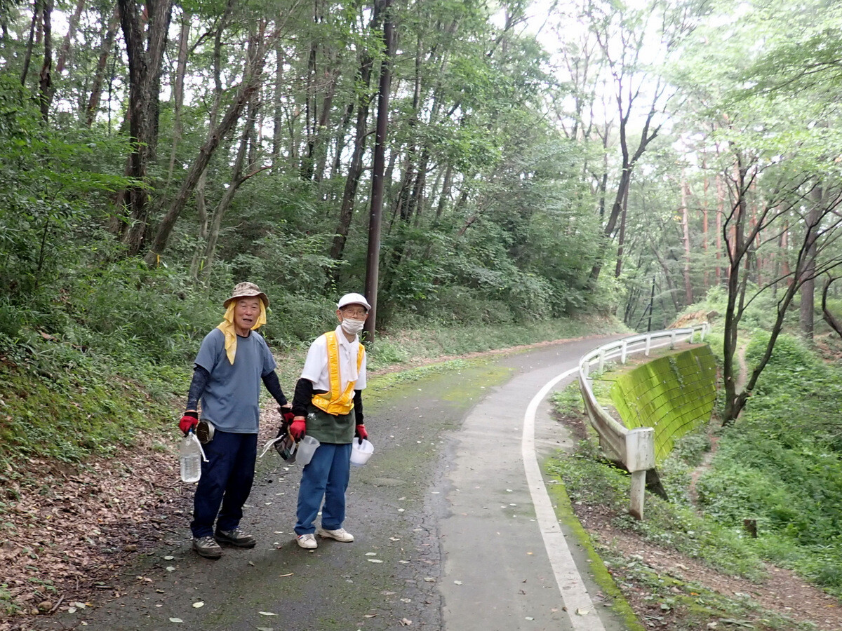 青木ノ入の果樹園周辺の学びの道脇の草刈りをしました。前回は6月20日です。