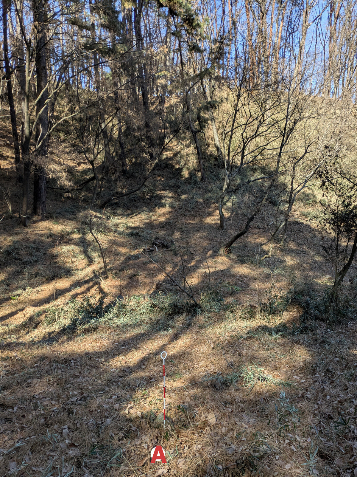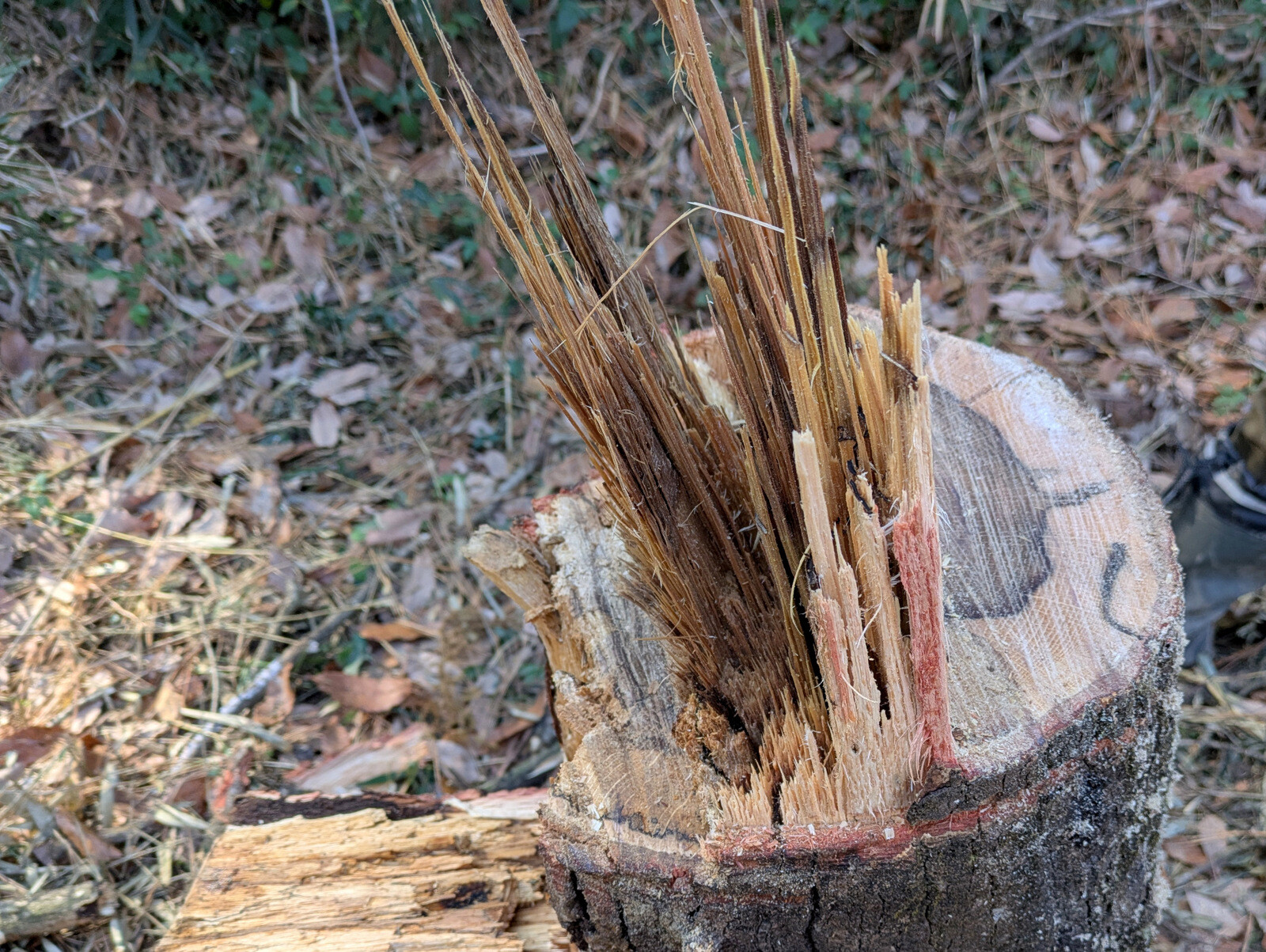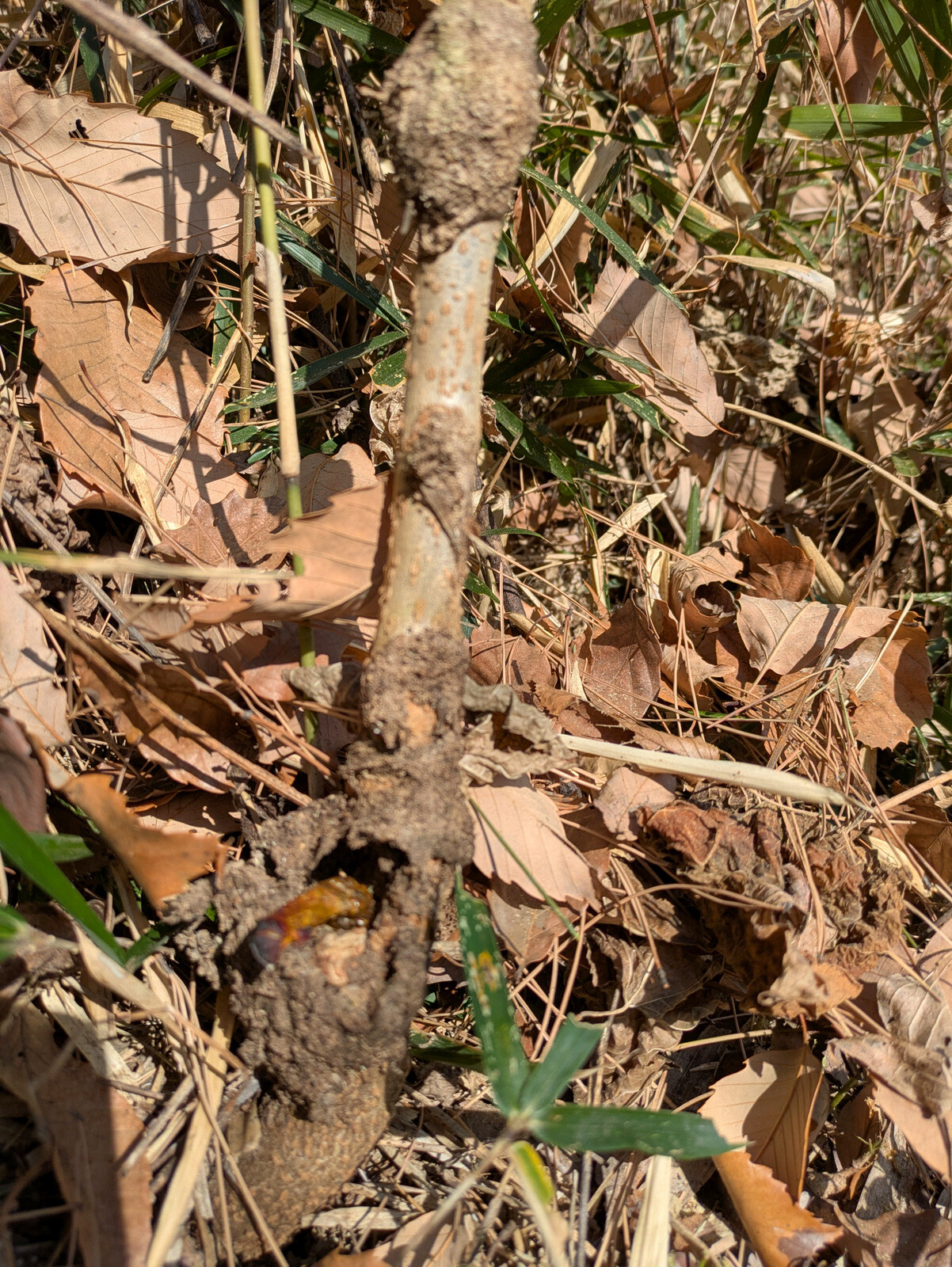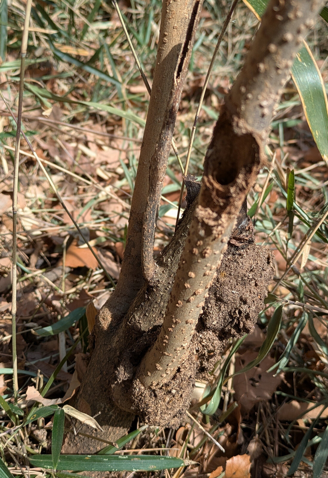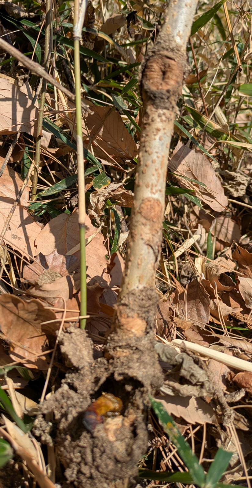 枝をへし折られたり、樹皮を剥がれて「巻き枯らし」状態になっているアカマツの実生があります。シカ、イノシシ?の仕業でしょうか。