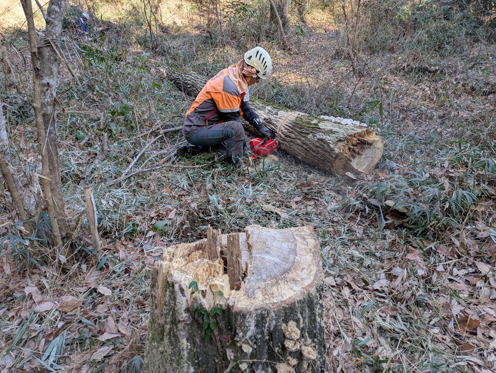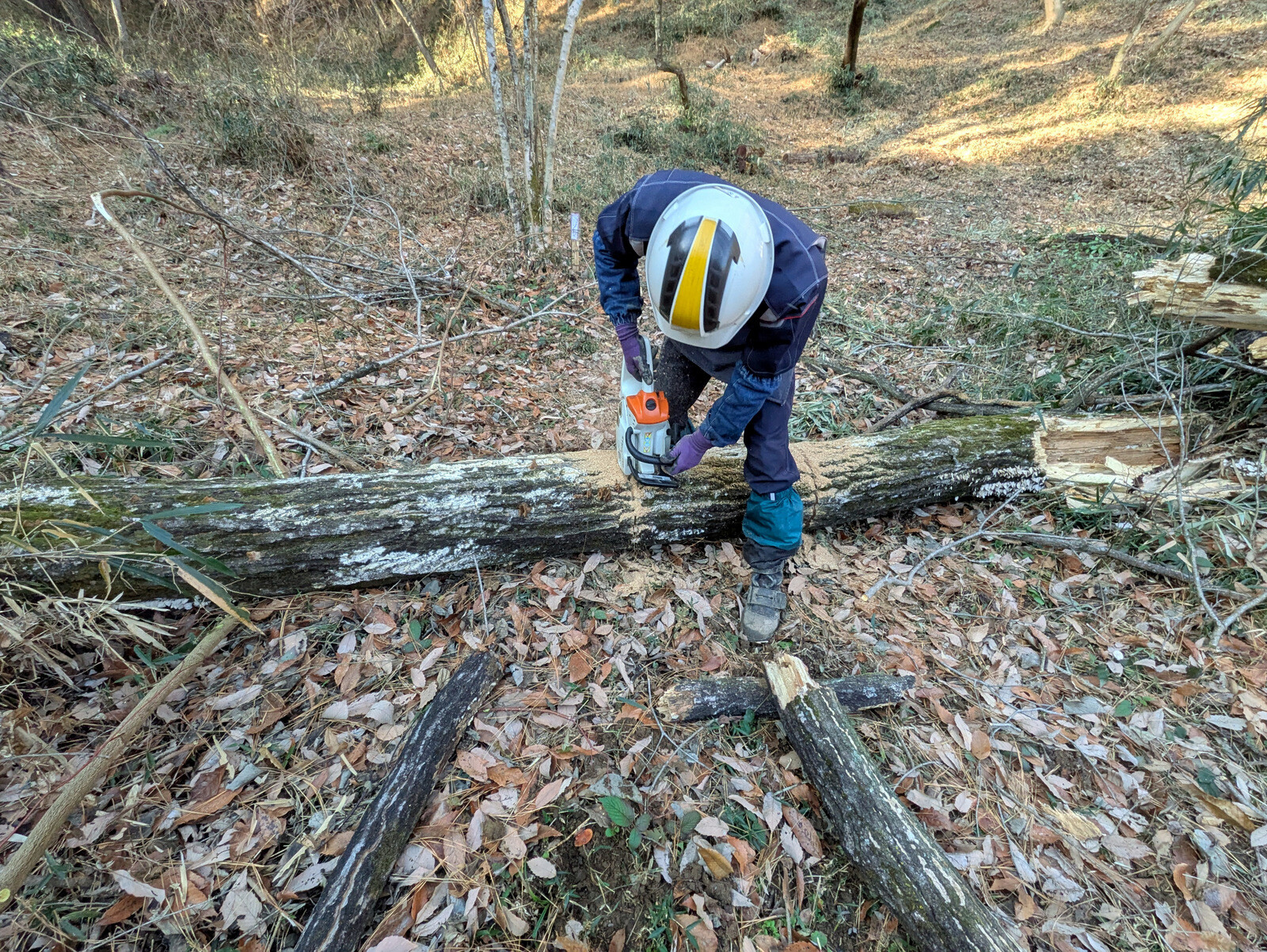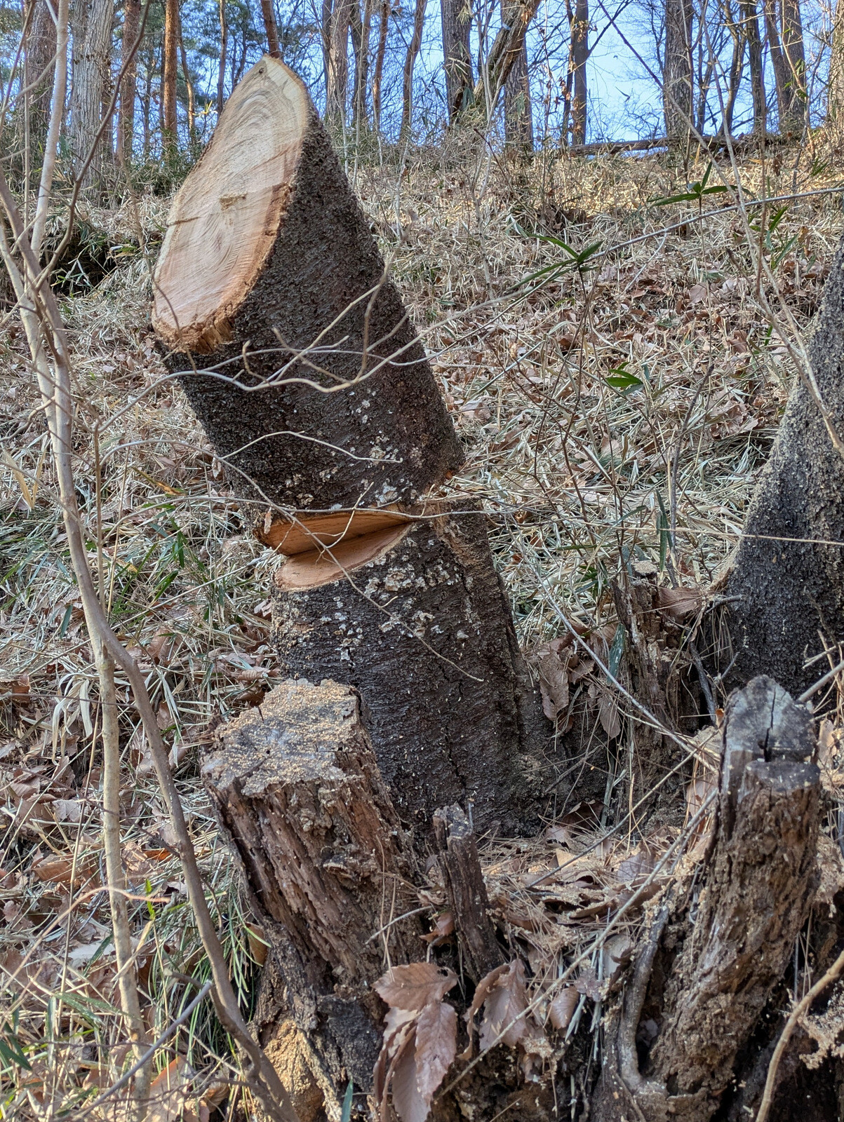 キノコのホダ木に使うコナラの伐採は今日で終わりました。