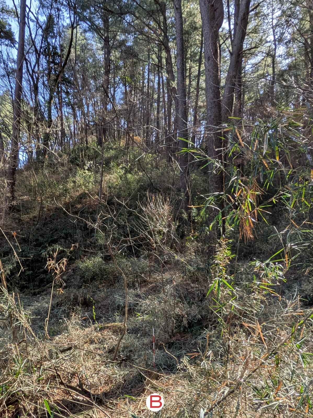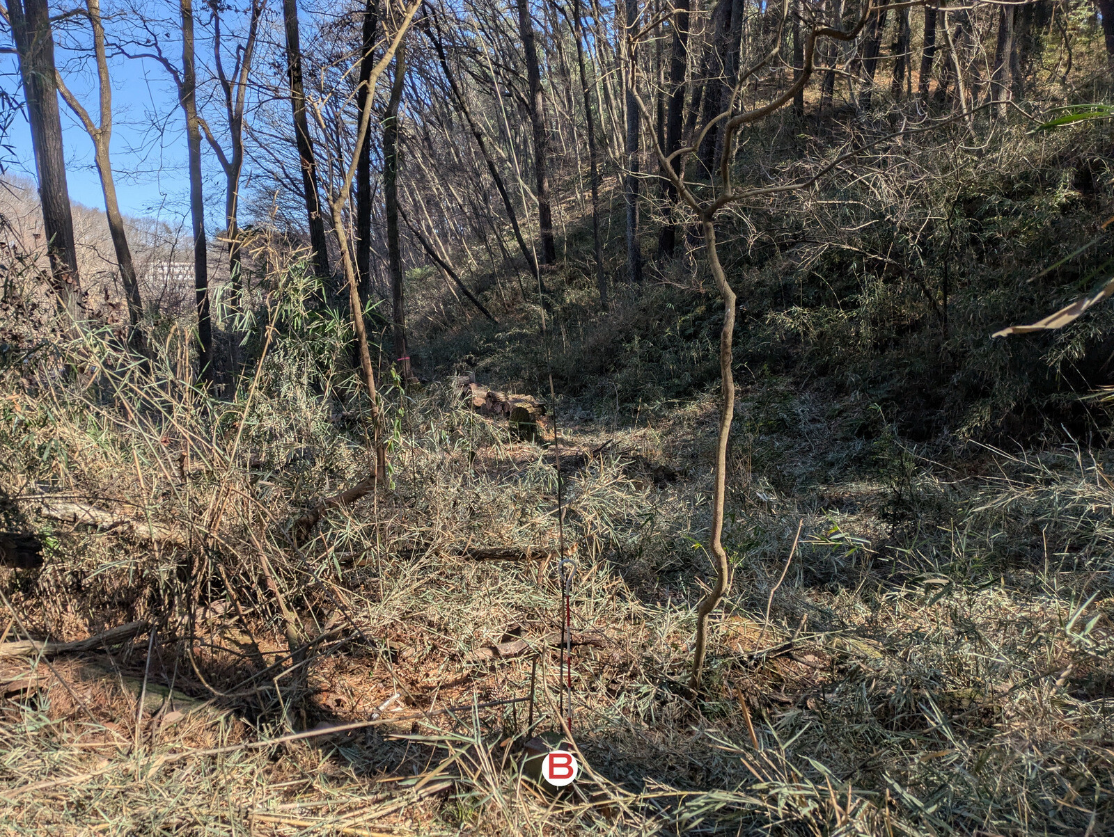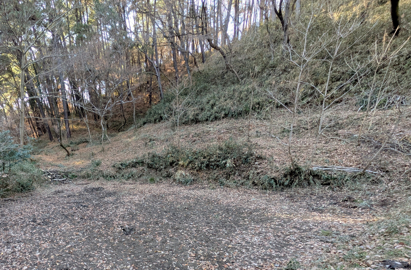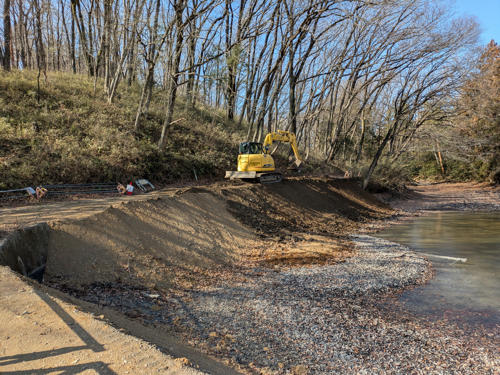 昨年5月に岩殿B地区に設置した落葉堆肥枠は9月末にイノシシに壊されて解体していましたが、岩殿C地区の無名沼イ号下にその資材を運んで組み立て落ち葉を入れました。