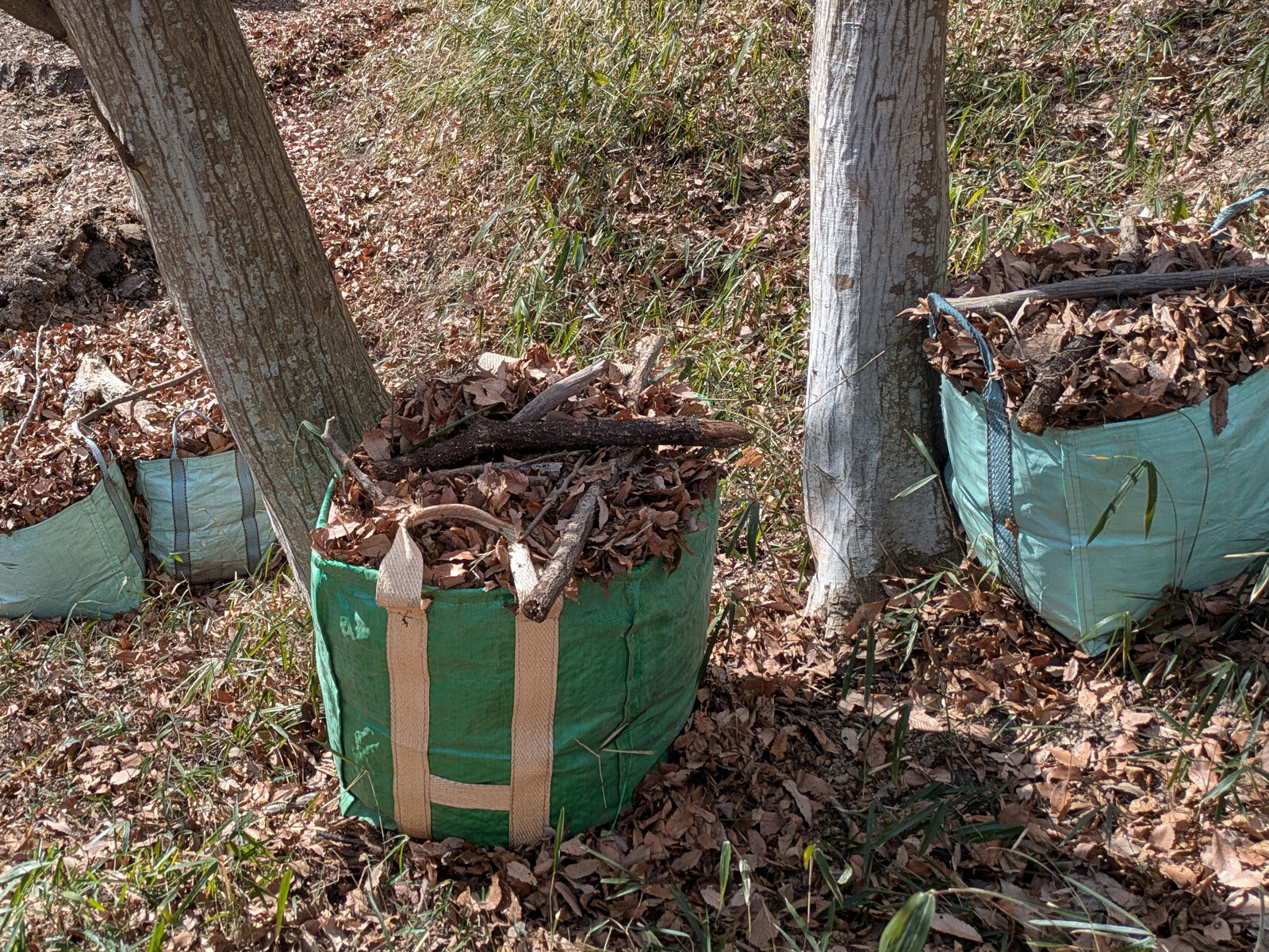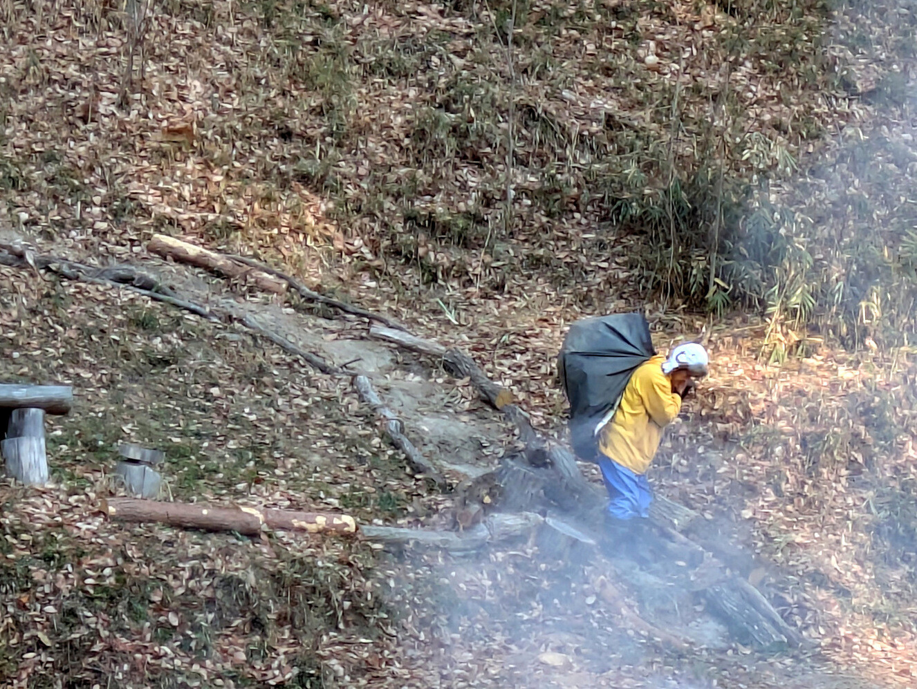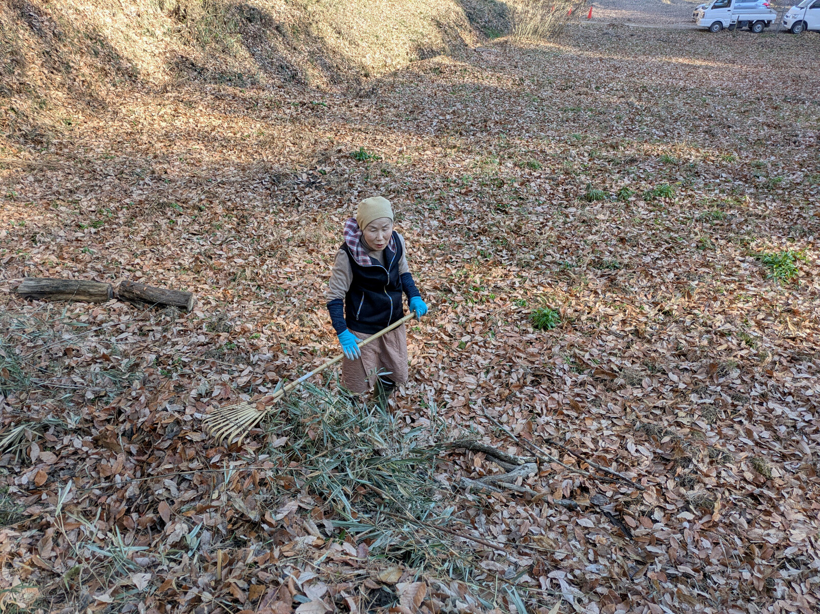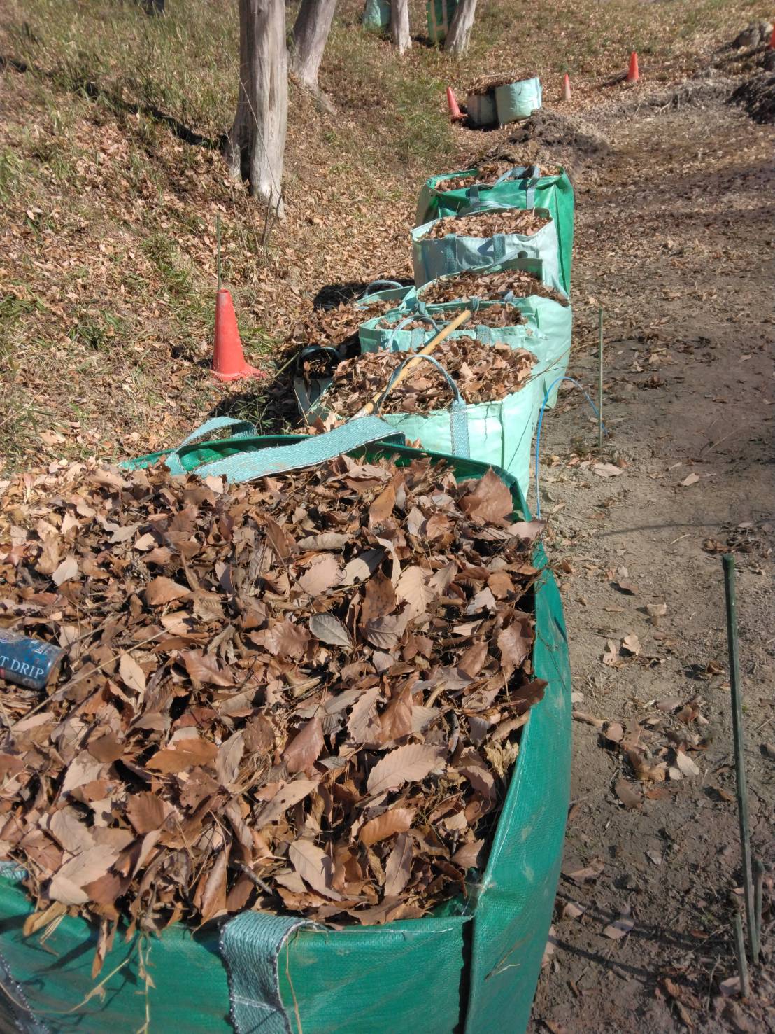 鷲巣さんは無名沼ロ号と周辺斜面の落ち葉掃きをして收草袋に詰めました。2月3日も実施し14袋になりました。
