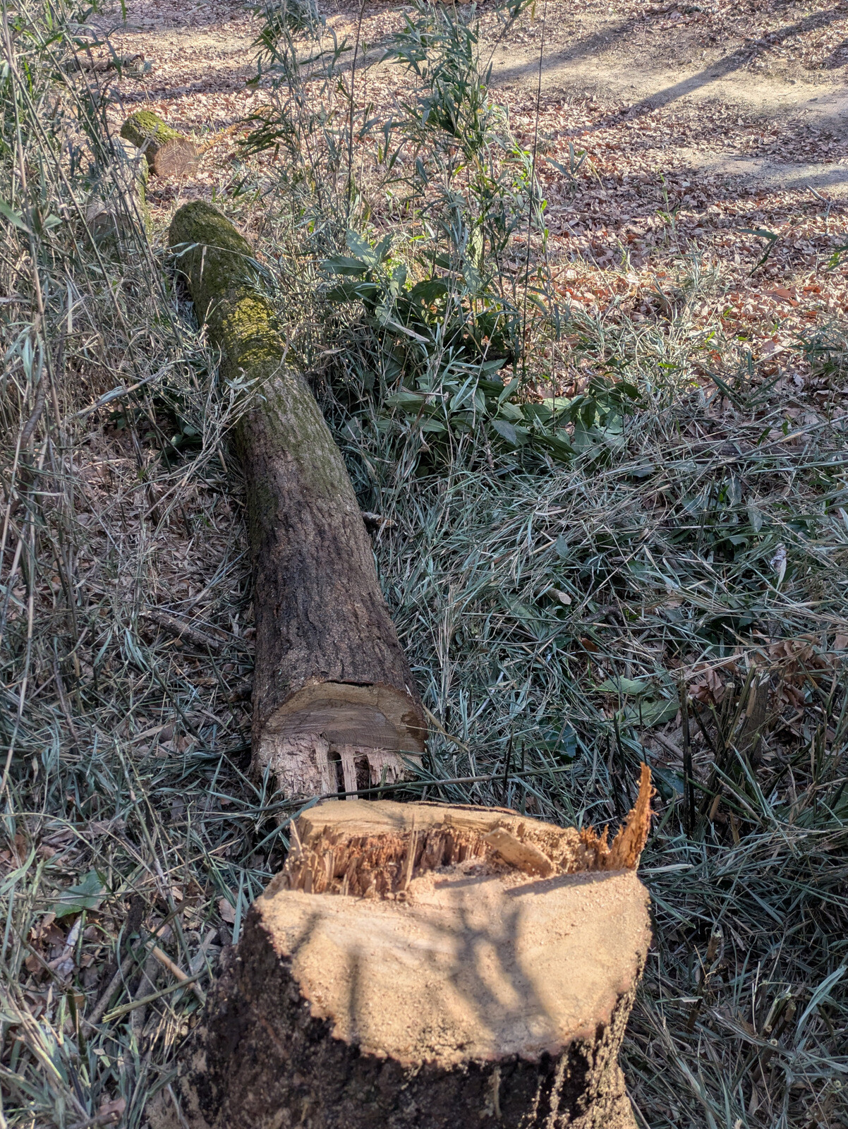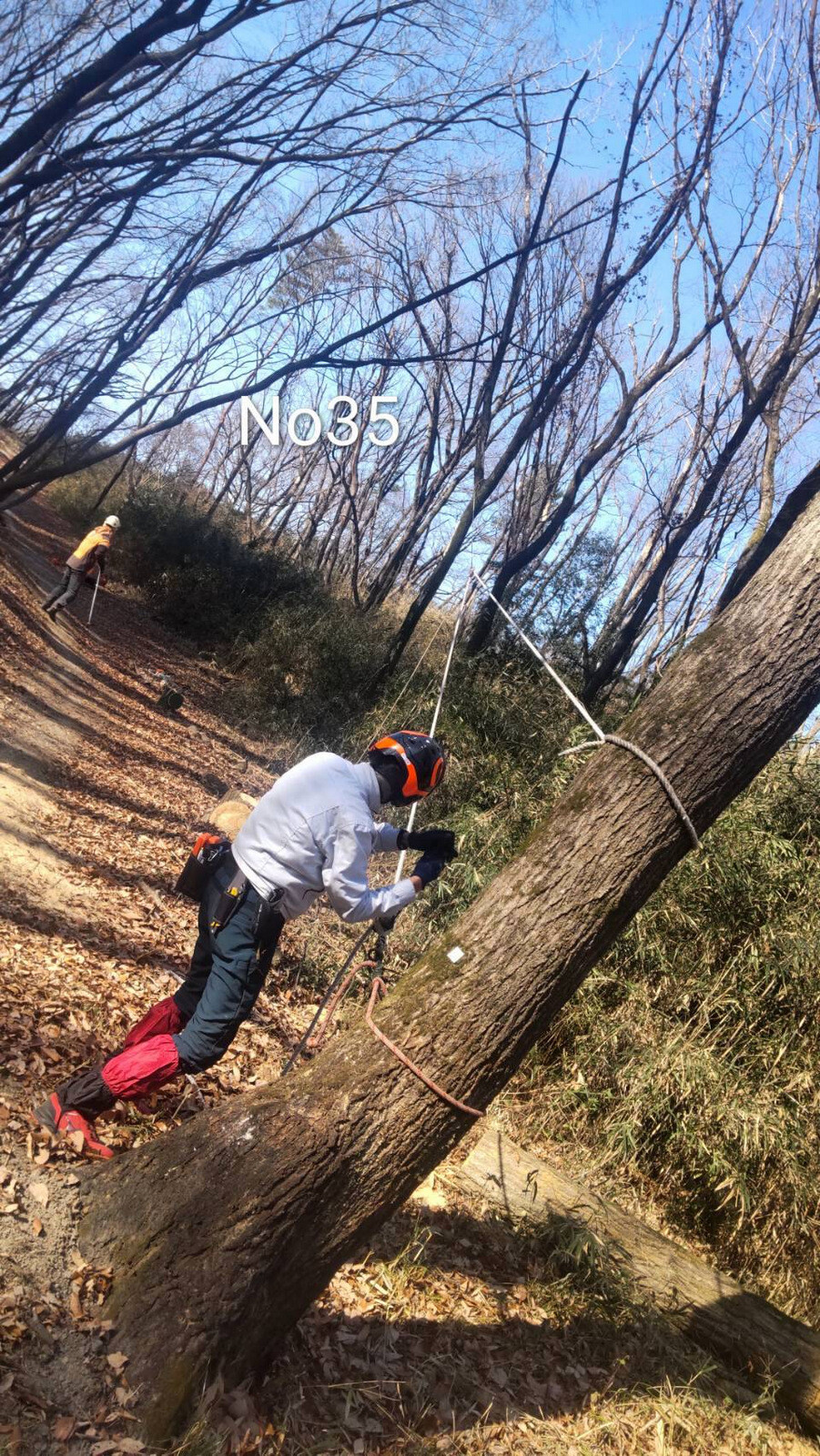 学びの道に隣接する民有地から道路上にはみだし、腐朽して、落枝や幹折れ、倒木にょる事故や通行障害が発生する恐れがあった落葉広葉樹の大木の伐採が造園業者により実施されました。ありがとうございます。