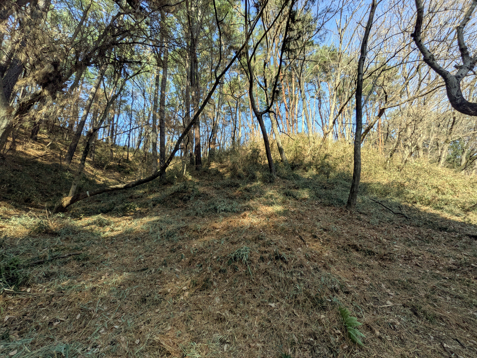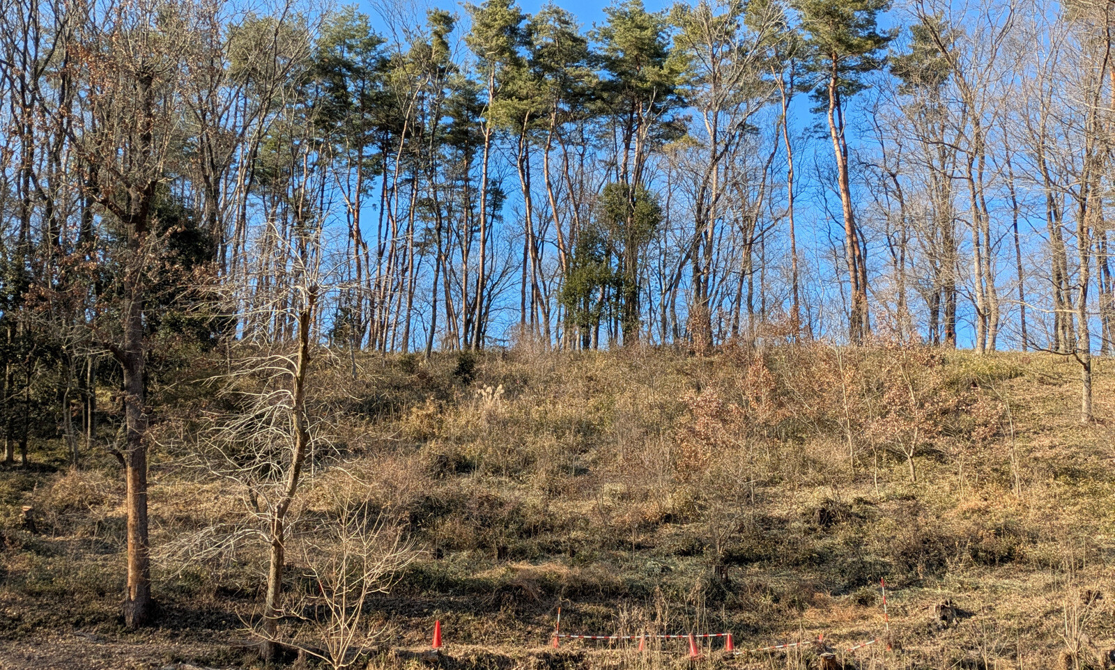 皆伐更新エリアのコナラ、アカマツ実生刈出し