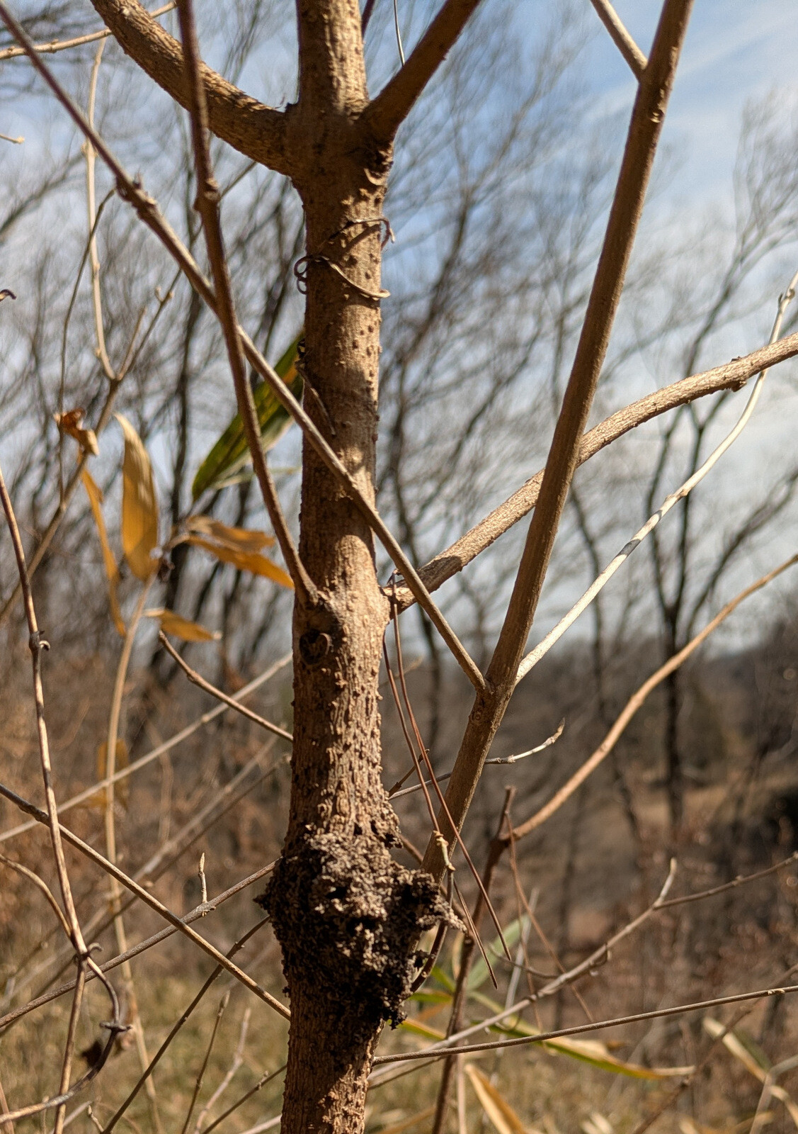 岩殿谷津田自然くらぶの自然観察会『新春の岩殿丘陵・谷津田を歩く 冬芽・ロゼット・冬越しの生きものたち』を物見山駐車場~見晴らしの丘~JAXA地球観測センター、入山谷津で実施しました。