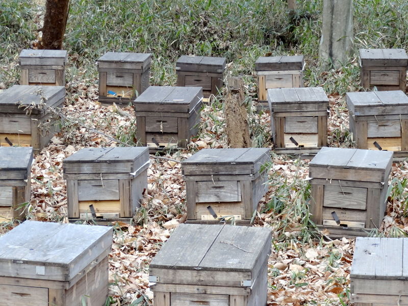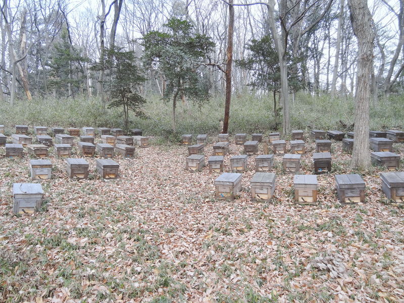 近くに養蜂家が巣箱(養蜂箱)を置いています。受粉用に貸し出しているそうです。