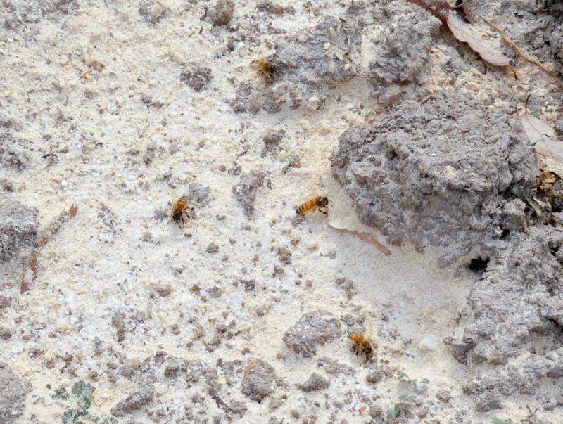 岩殿の畑にまいた米ヌカにミツバチが集まっていました。