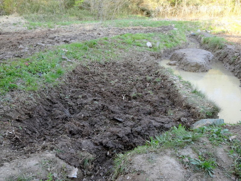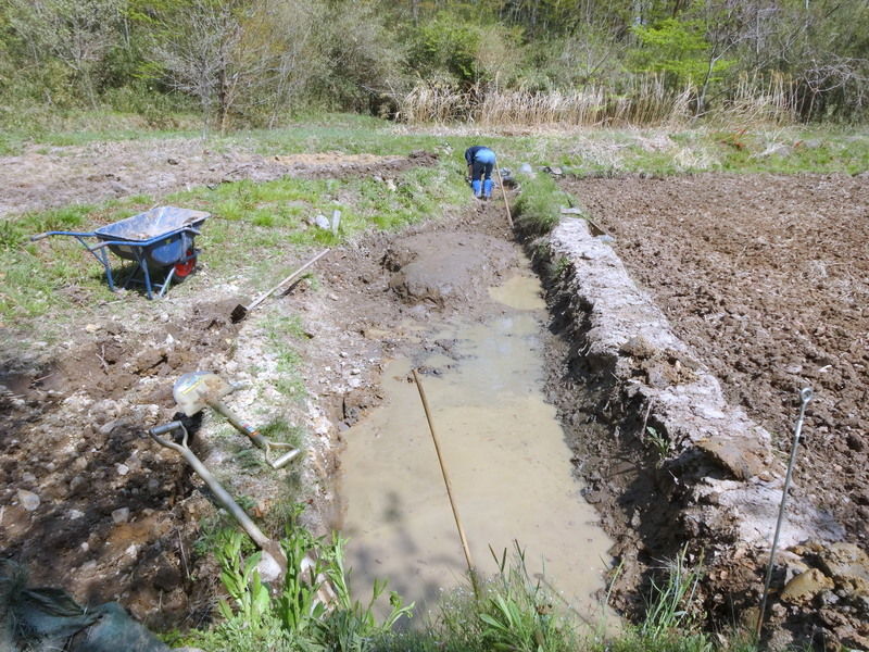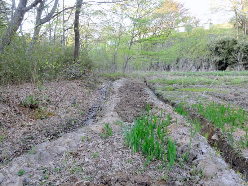 入山沼からの水路と上の段の水ぬきの明渠の間に土を入れて均(なら)しました。