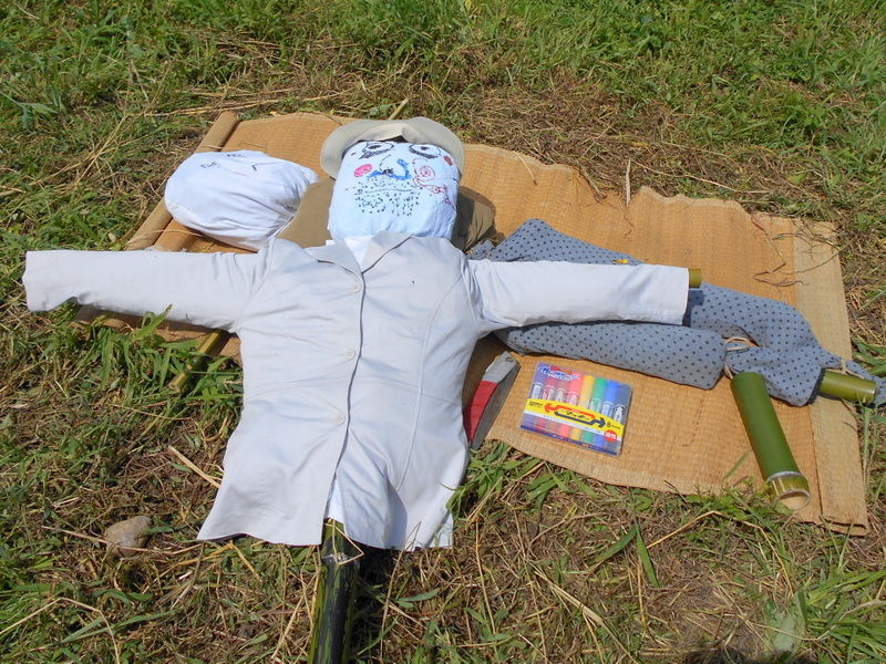 児沢探検隊の案山子(かかし)作りに参加しました。色づきはじめた稲穂の波の中に両手を広げて立つ案山子はほほえましい秋の田園風景ですね。