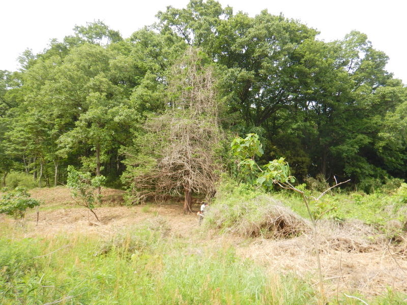 田んぼ側から見るとまだまだ鬱蒼としていますね。気長に安全第一でいきましょう。