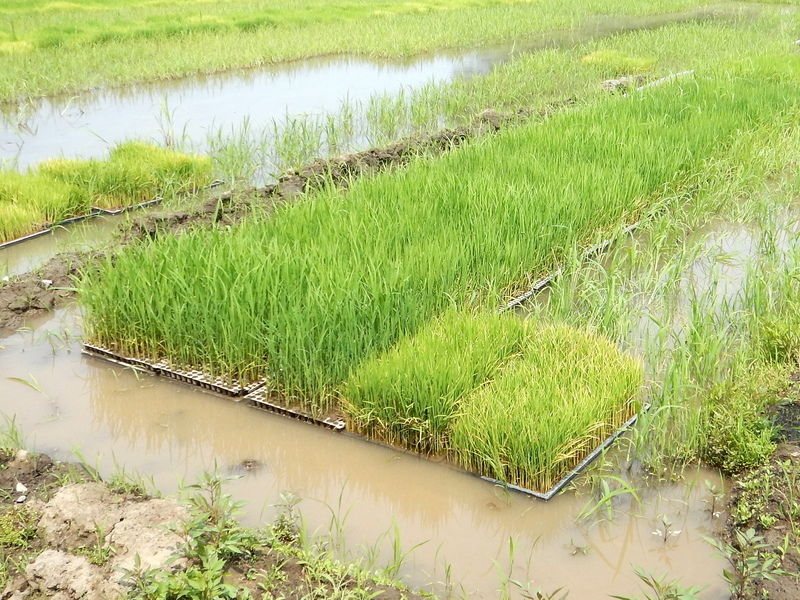 4月18日にまいたポット苗(左)。苗半作どころか苗8分作というくらい稲作には苗作りが重要だということや、稲の生理と生態について基本的な知識を学習しておくことの必要性についても再認識しました。