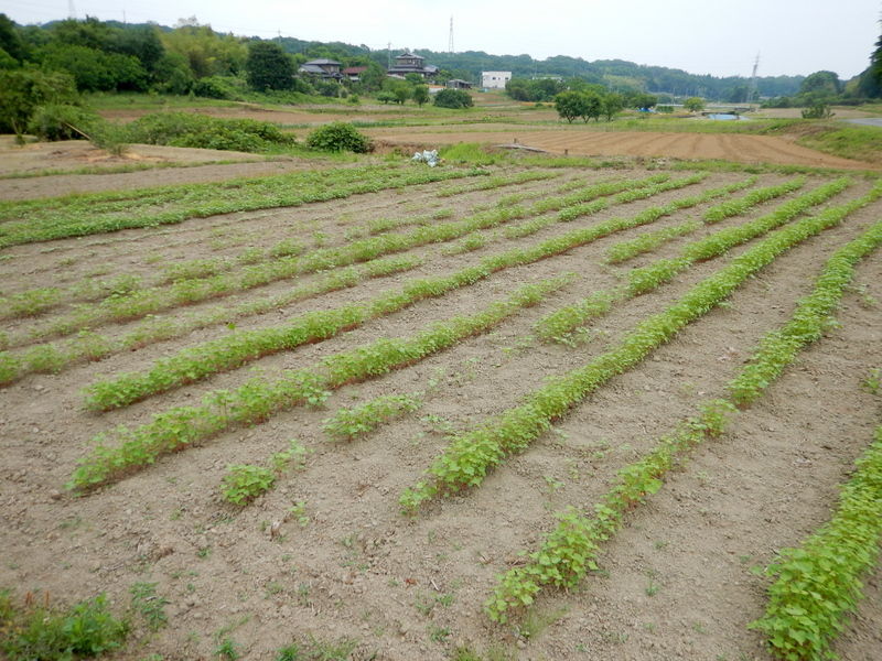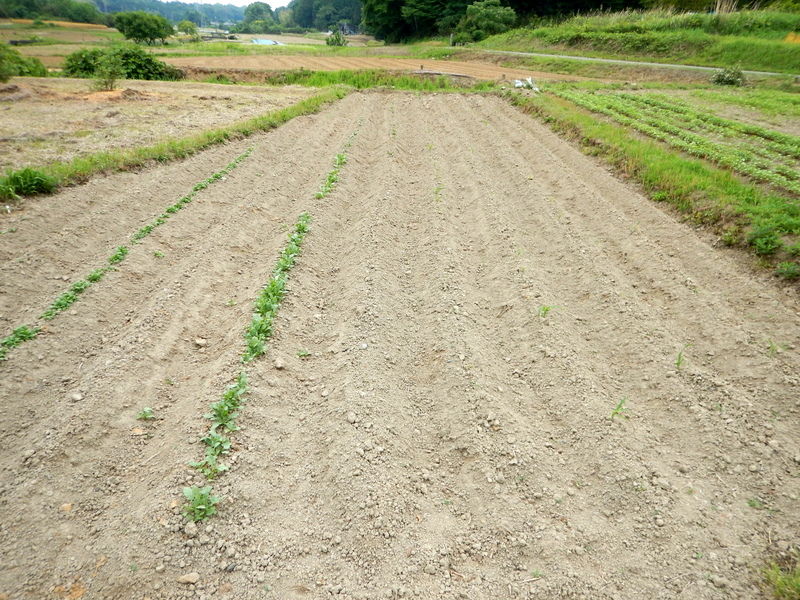 畑が濡れている時は絶対に作業をしないことです。大勢が数回づつ歩いたら…延べ百回以上踏み付けることになり、谷と畝の下部がカチカチのコンクリート状になります。空気が通わず、水切れが悪くなり、悪影響がでます。またこんな日に間引くと、葉についた傷に泥が刷り込まれ、植物の健康を害します。さらに、間引き後に必須の土寄せなどの鍬作業ができません。