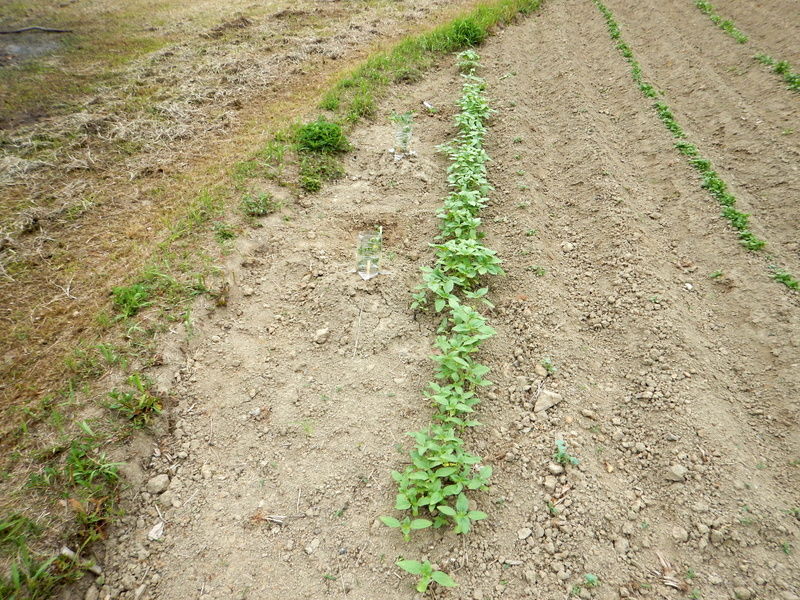 ゼミ生が5月7日にまいたソバ。蒔き忘れしていて後日まいた筋もありますが、種まきの密度もいろいろですね。