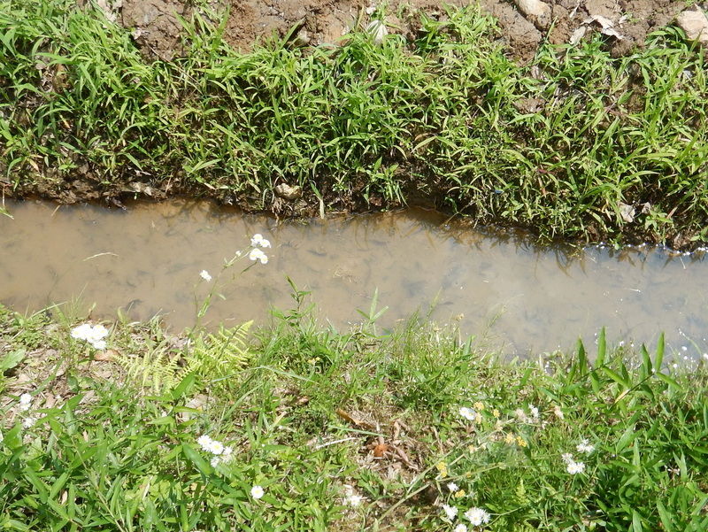 岩殿C地区の堰の水たまり状態になっている水路にいました。1㎝ぐらいで、黒と茶色の縞模様が特徴的です。ゲンゴロウの仲間は日本では100種類以上(130種類以上・『図説 日本のゲンゴロウ』)知られています。多くのゲンゴロウが田んぼから姿を消した中でコシマゲンゴロウは減少しているが残っている中型のゲンゴロウだそうです。