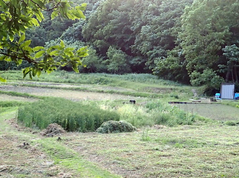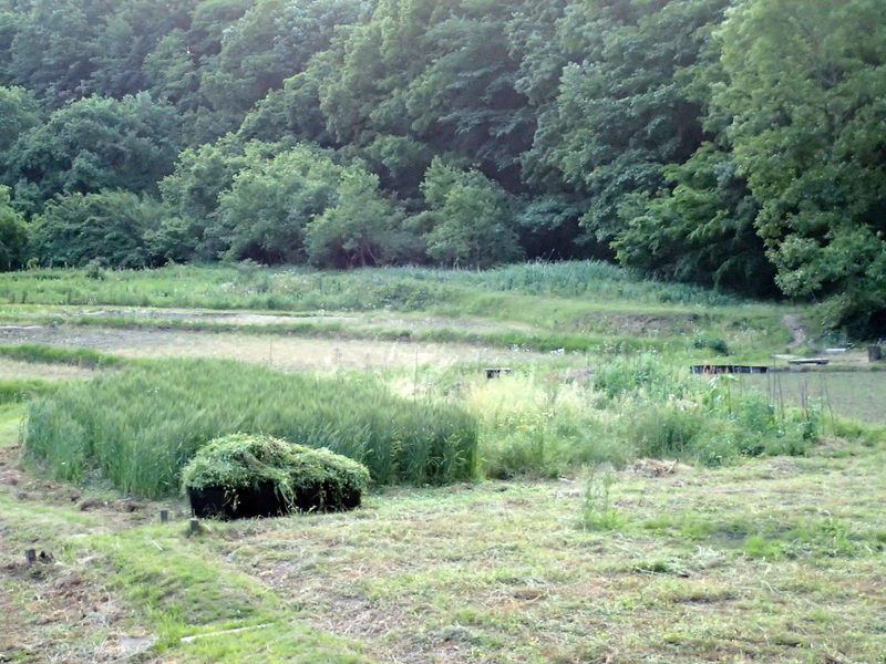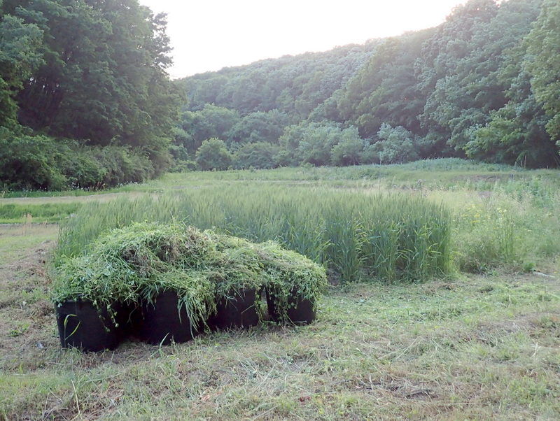 5月13日に刈った岩殿E地区の坂下の区画の草の量を推定してみました。A地区の畑に積み上げてあります。