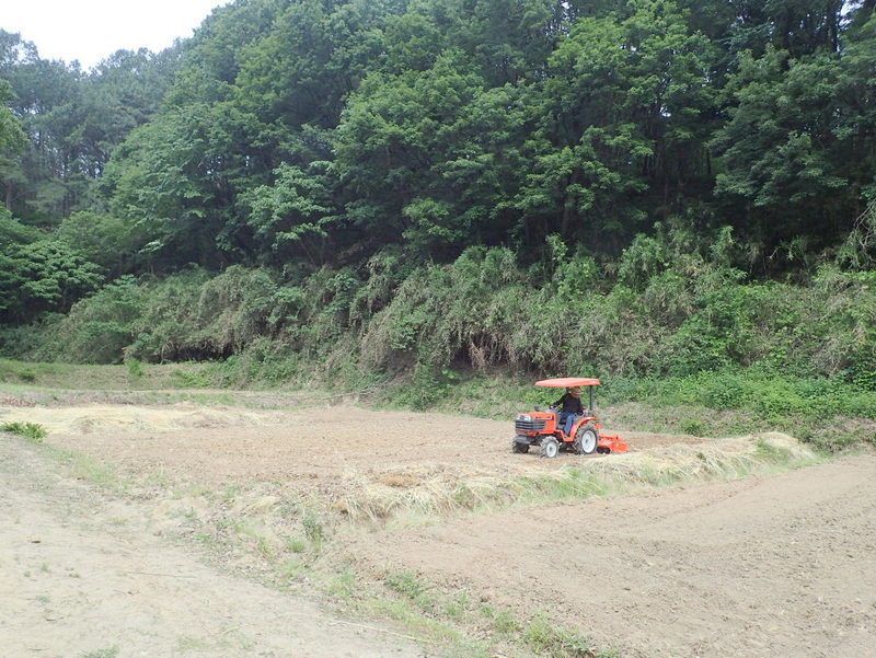 岩殿C地区の上から3番目の畑と下の小さい田んぼを吉田さんがトラクターで耕しました。
