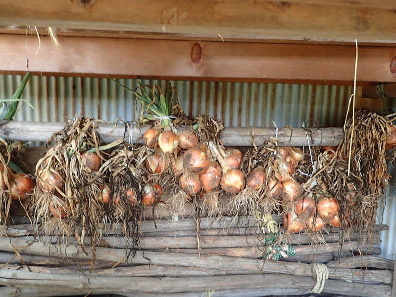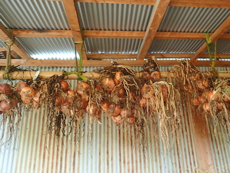 児沢の上の畑のタマネギを収穫して児沢家の物置の軒下につるしました。