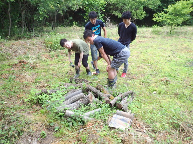 その後、4年生はキノコの駒打ちに取り組みましたが、電動ドリルを使わないと無理だったようです。