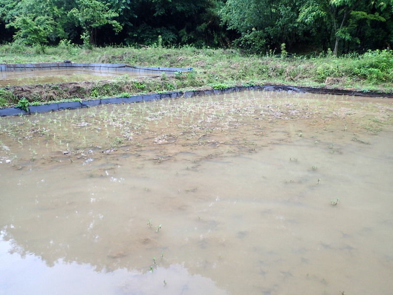 中の田んぼは途中まで田植えをしていますが、その部分と植えてない部分で水の深さがかなり違うので、全面に植えるのは無理かも知れません。