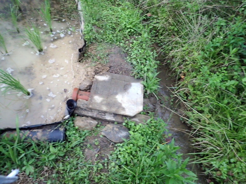 岩殿A地区の上の田んぼの排水口の際に穴があいてしまい、田んぼの水がぬけていました。昨日は田んぼの見廻りをしなかったので、おそらく一日以上漏れ続けていたのでしょう。
