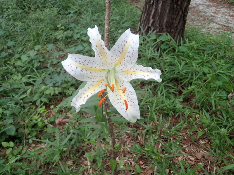 作業エリアにはヤマユリやオオバギボウシが咲いています。市民の森保全クラブの活動を2012年に始めて5年目の夏を迎え、保全活動の成果が一目で実感できるようになってきました。