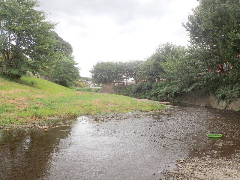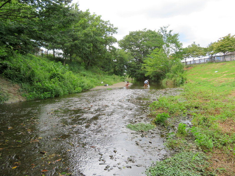 相模原市立宮上小学校北側は川幅が広く川原やワンドがあり、こどもが川に入って遊んでいました。