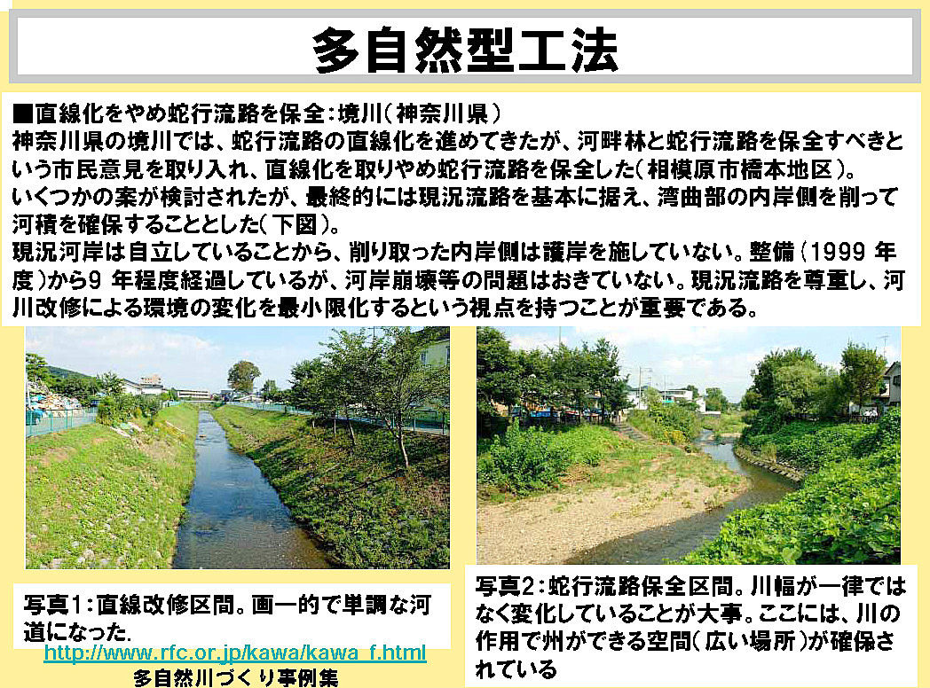 多自然川づくりの参考事例、多自然型工法として紹介されている場所です。