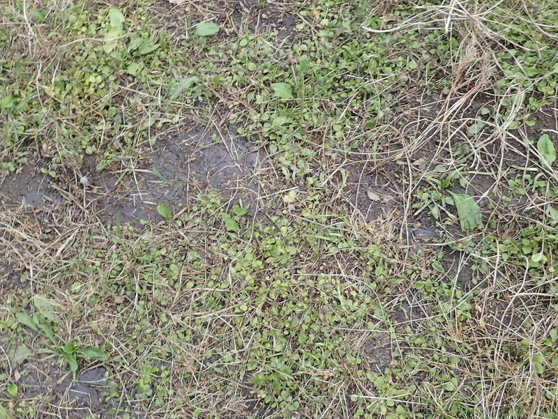 手前の草地に3ヵ所ほど湿気っていて、明日の朝には水がたまっていそうな場所がありました。