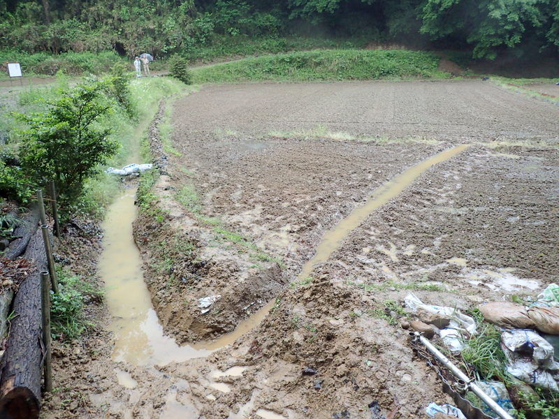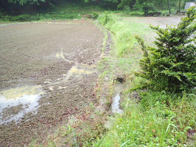 12時台の写真です。ボッシュ林側、無名沼イ号、山ぎわの水路ともに流れているとわかるような水量はまだありませんが、山からしみ出してくる水が集まって田んぼに水が入り始めました。