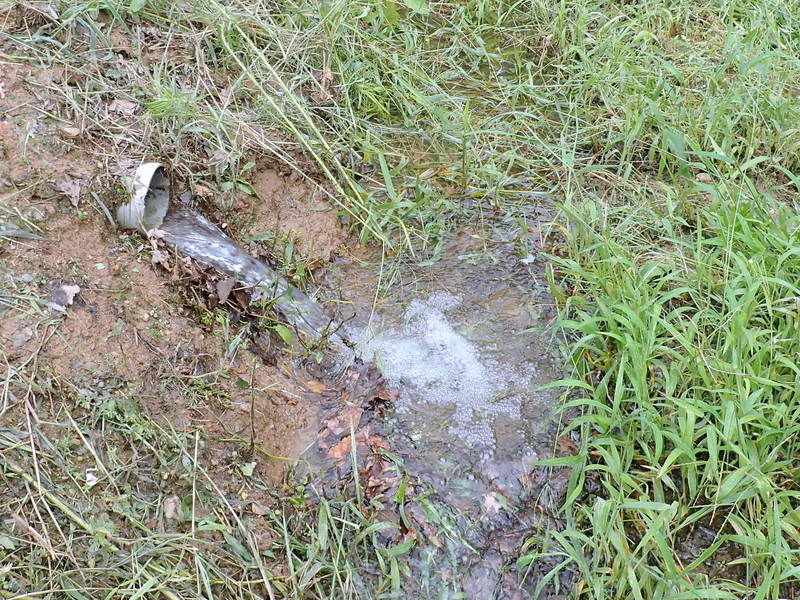 無名沼イ号の水は地中に埋めた塩ビ管を通って今年はカボチャを植えた「田んぼ」に引込まれていました。耕作放棄になる前の話です。田んぼを使わなくなってからは塩ビ管はフタがされて水が流れていませんでしたが、今日は水が音を立てて流れ出していました。フタにしていた土をつめた肥料袋が傷んで水口が開いたようです。畑に水がはいらないようにU字溝を臨時に置いて、しばらく様子を見ることにしました。ダイズ畑の上の溝を通って市民の森側の水路に落ち、下の田んぼに入っています。