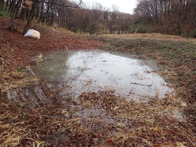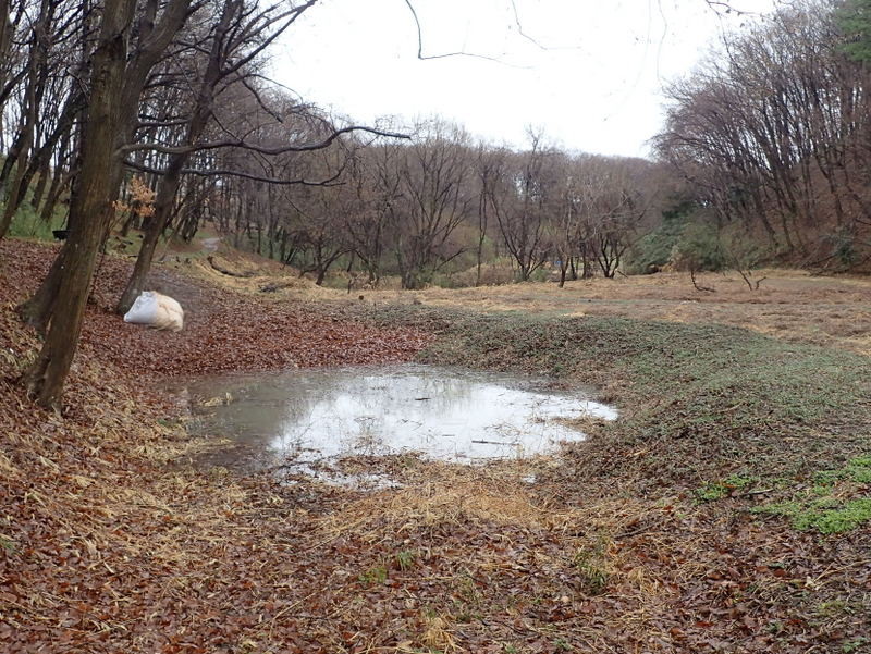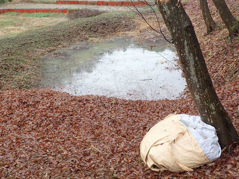 昨日の雨・雪で24日のイベントの遊びのメインフィールド、無名沼ロ号がどうなっているか様子を見てきました。集めた落ち葉をマットにして、ターザンロープやブランコを沼の上の木の枝に架けて遊ぶ計画でしたが、水のたまり具合が予想以上で、低学年・幼児の参加が多いことも考慮して、イベントの実施を断念することにしました。土曜日は晴れで温かくイベントには絶好の天候になると思うと、とても残念です。天気が良くてもグラウンドの状態が悪いので運動会は中止というようなことでしょうか。