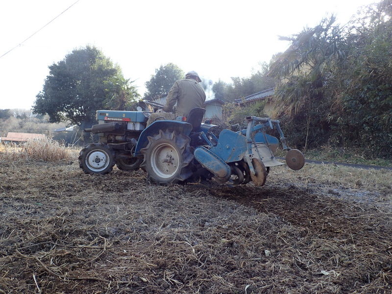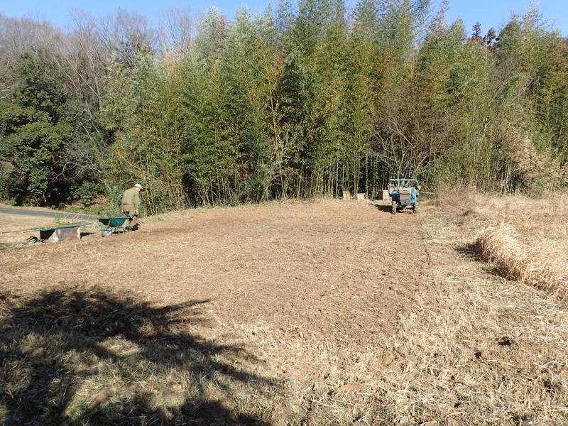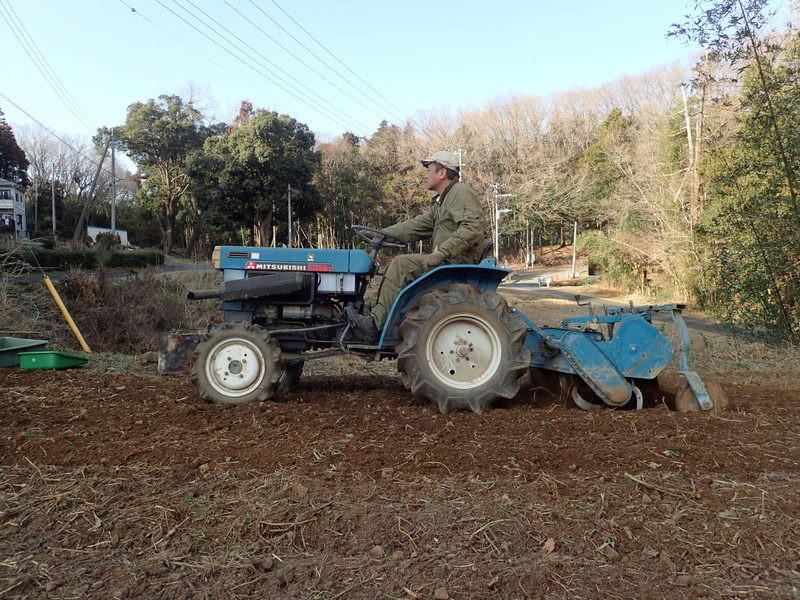 2月6日の刈草焼却灰をまいて、三本さんがトラクターでポポー園の耕耘をしました。15m×10mの用地に苗木10本を植える計画です。