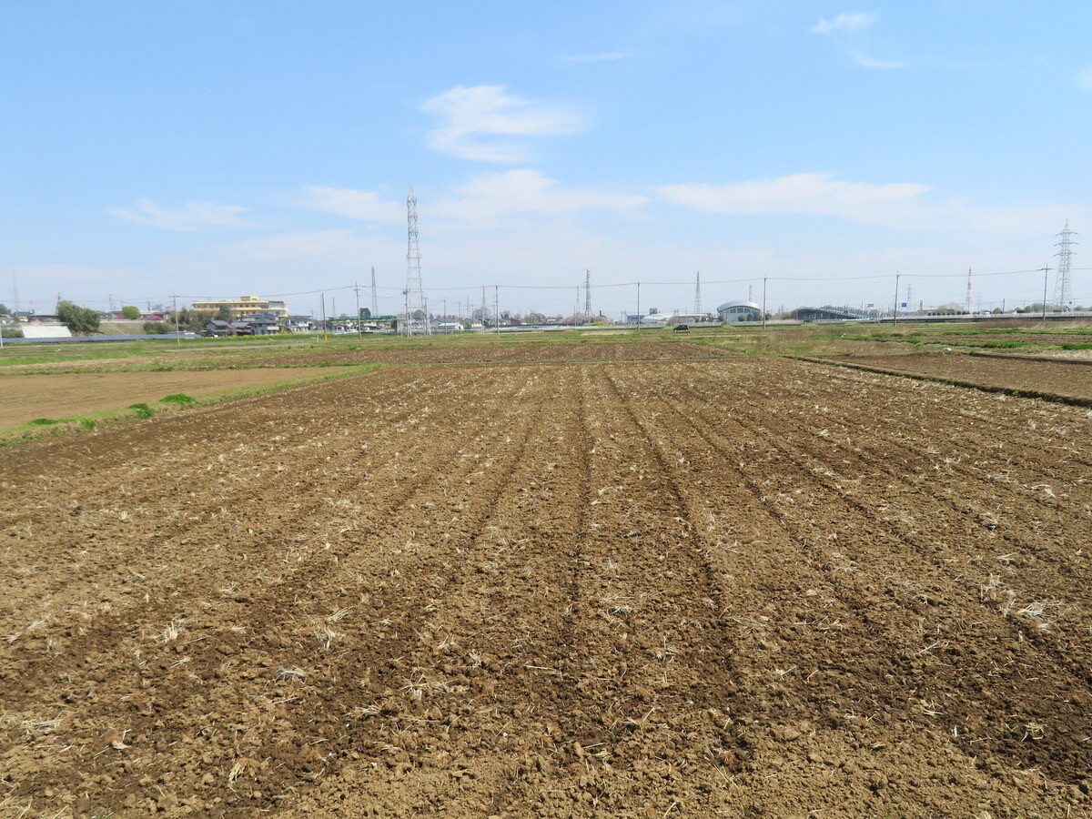 毛塚一反田は東・西2枚の田んぼの中畦を取って1枚にした田んぼです。田んぼに水を張ると高い所は地面が露出。雑草が生えて管理が大変。水を深くすると低い所は苗が水没。最新の機器を使えば田んぼの土を移動して水平にすることが楽にできるようですが、旧式のトラクタでは難しい。