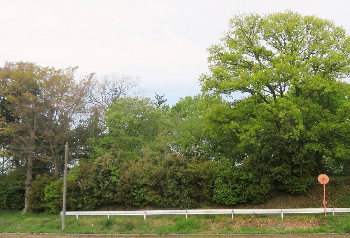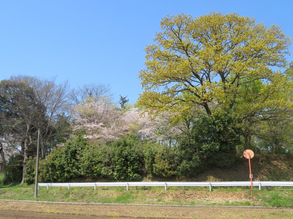 4月7日の田んぼと小田原神社の社叢