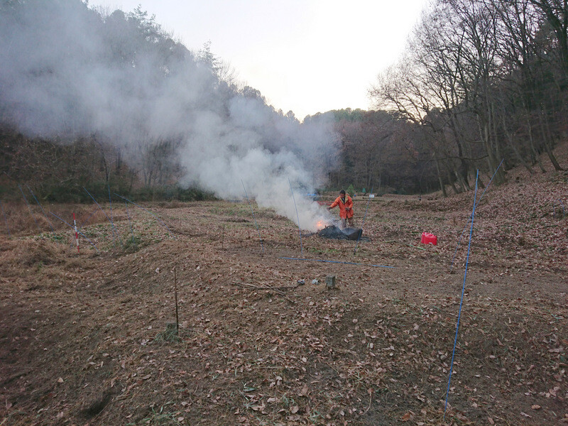 岩殿F地区の植物調査区の刈り草を区外に集めて2箇所で燃しました。