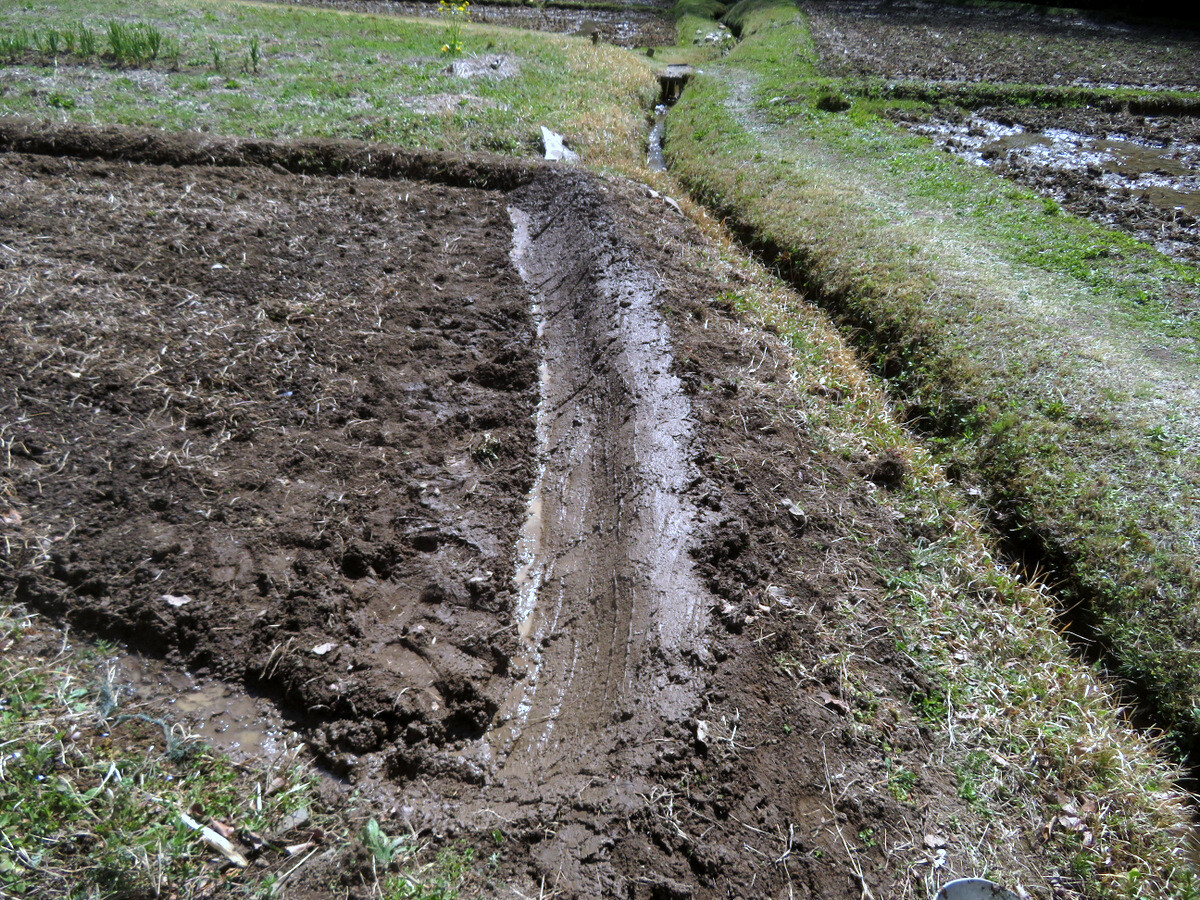 岩殿A地区の下の田んぼ西側の畦塗りを細川さんがしました。お疲れさまです。