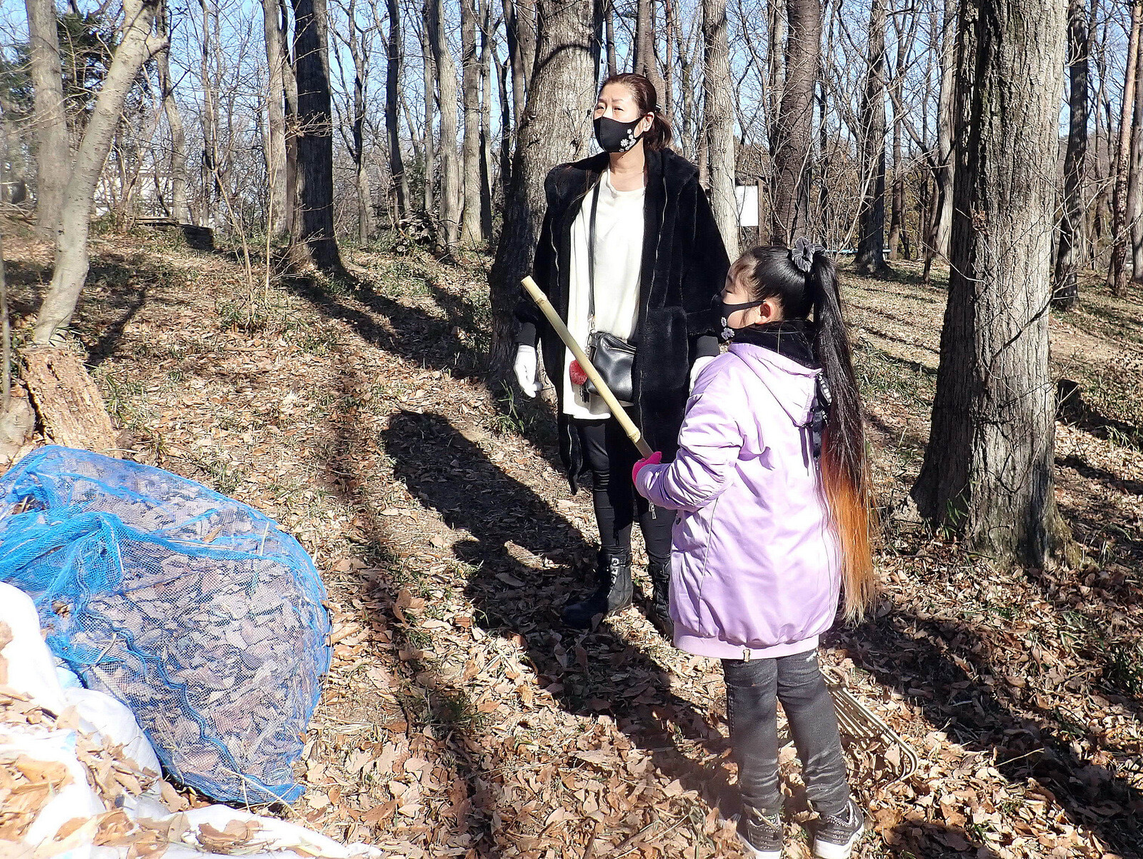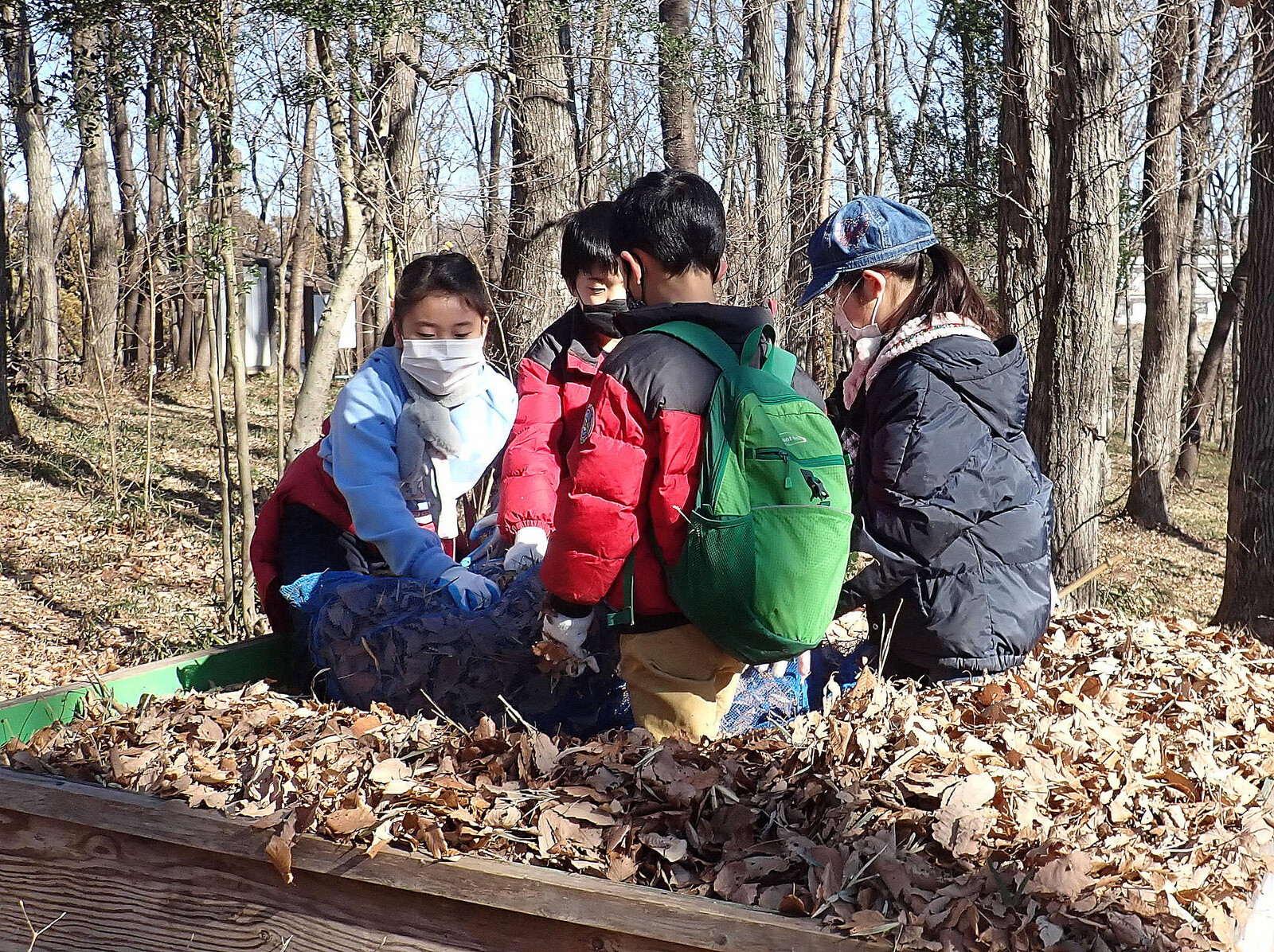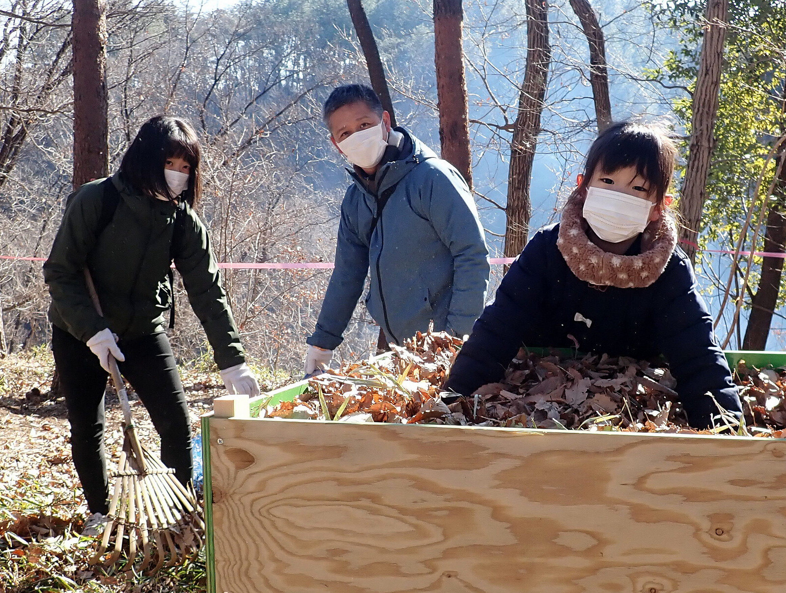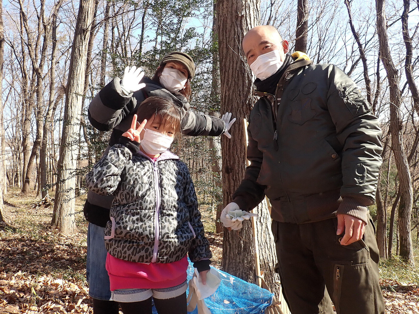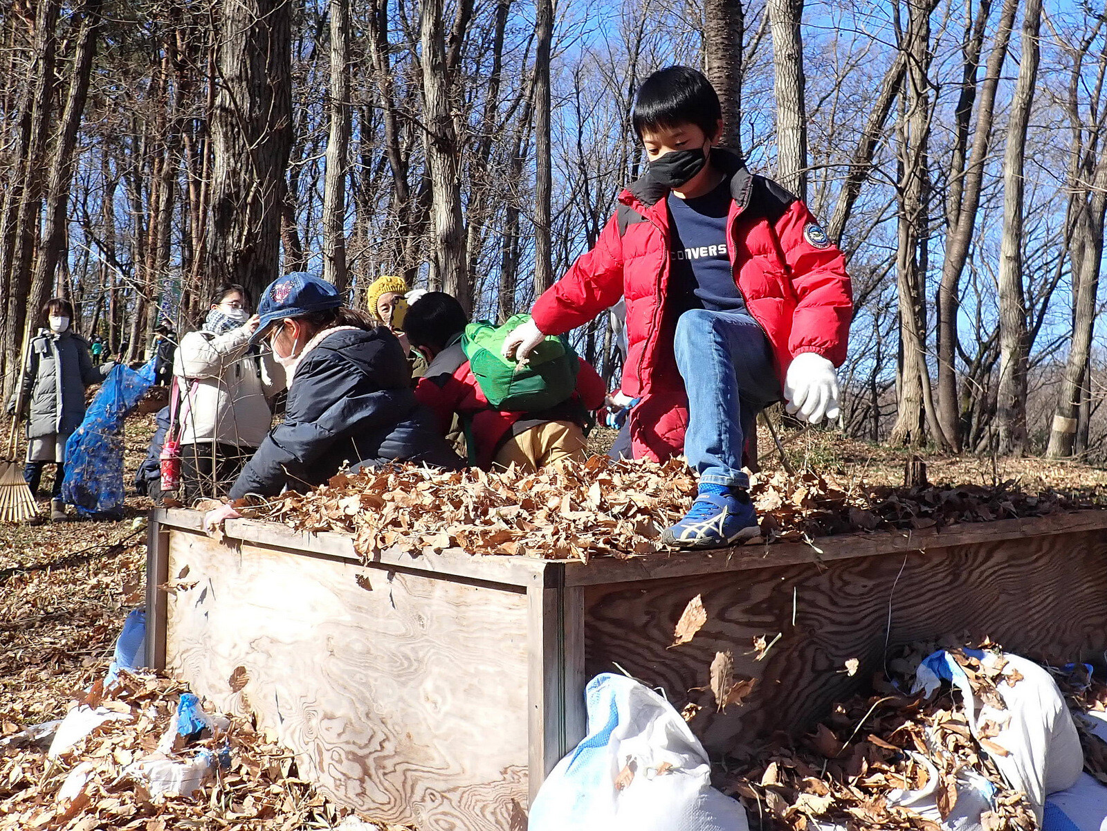1月8日に実施した『市民の森で落ち葉を掃いて焼き芋を食べよう』(市民の森保全クラブ・岩殿満喫クラブ共催)写真集(その1)落ち葉掃きです。