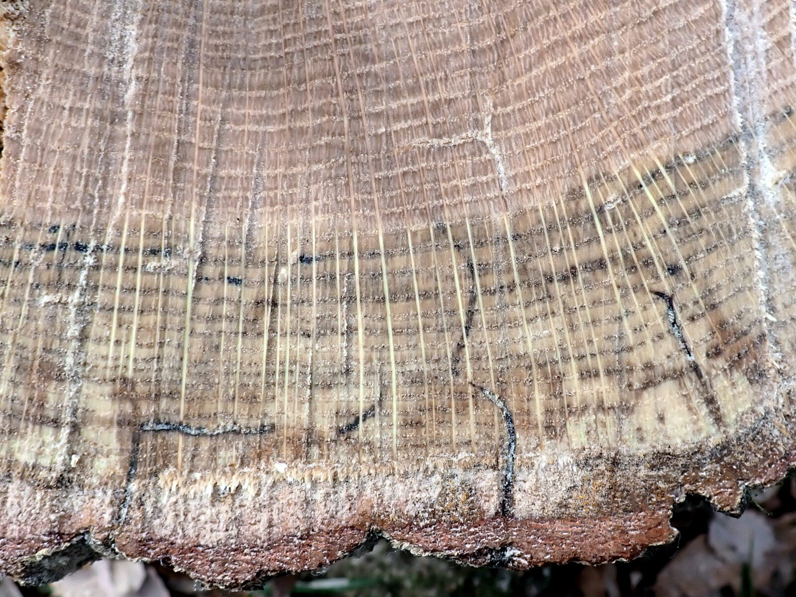 2)ラファエレア菌を運ぶカシノナガキクイムシも樹幹内にいて殺虫は難しい。