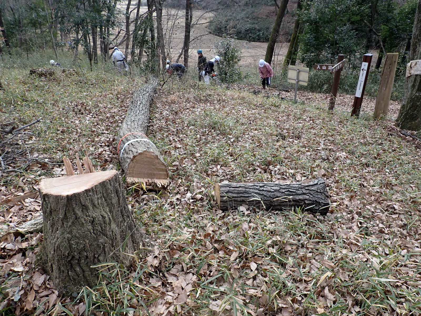 近くに10月24日に伐採したコナラ(フラス№3、目通り直径35㎝)があるので、コナラ枯死木の伐採は2本目です。