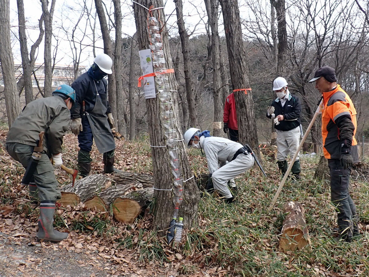 森林内や伐採した現場にカシノナガキクイムシしか存在しないのであれば、殺菌剤注入や殺虫剤散布、NCSくん蒸剤処理有効かもしれません。しかし一方的に薬剤処理したり、環境に良くない処理をしたりするよりも、効果が少なくても少しでもカシノナガキクイムシの生息密度を低下させることが重要と考えます。
