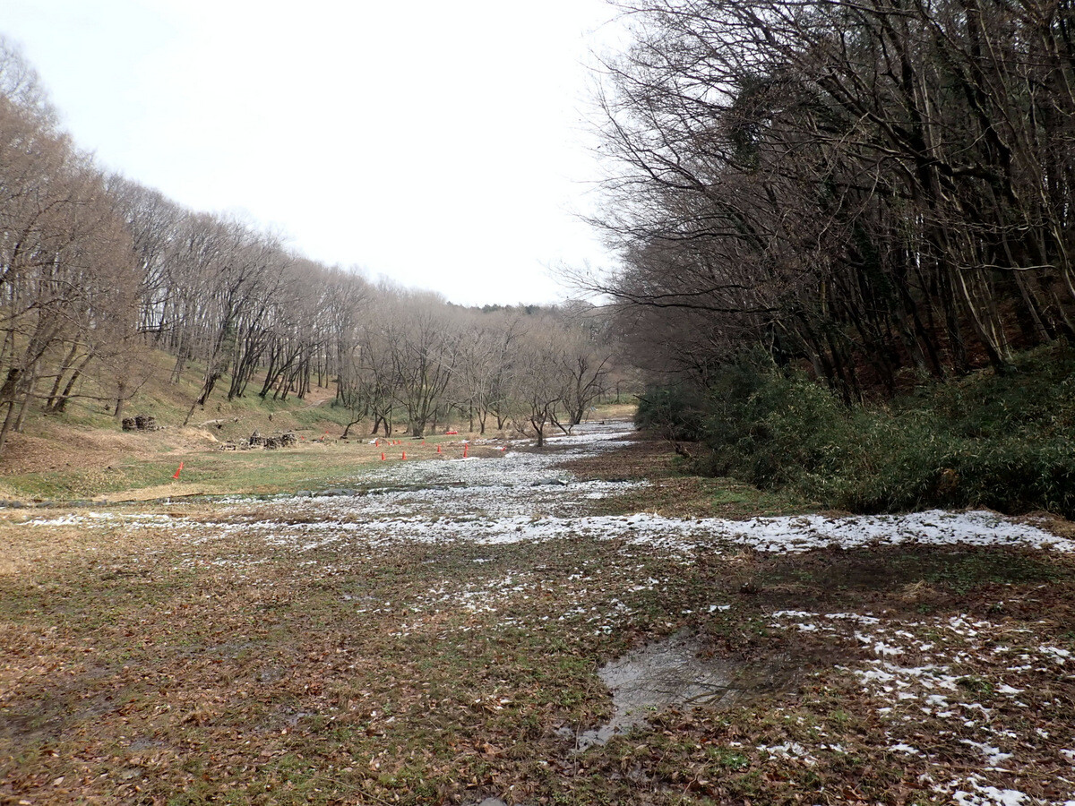 昨日(22日)は昼間、雪が降っていました(鳩山アメダス日積算降水量13.5㎜)。日中の寒さは1℃~2℃の凍える寒さでした。。今日10時頃の入山谷津です。