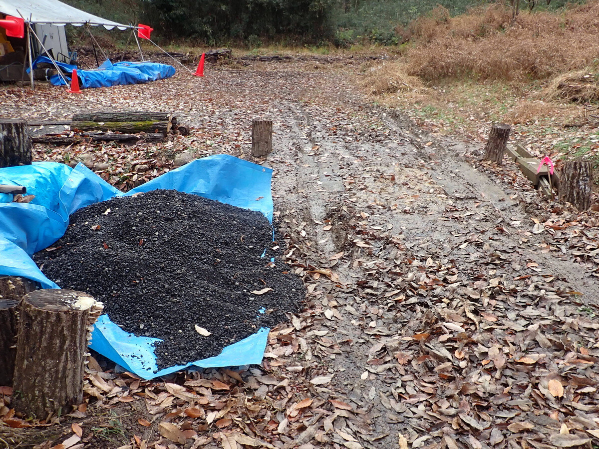 江原さんが土橋の盛土に使う砕石を軽トラで運んできてくれました。ありがとうございます。