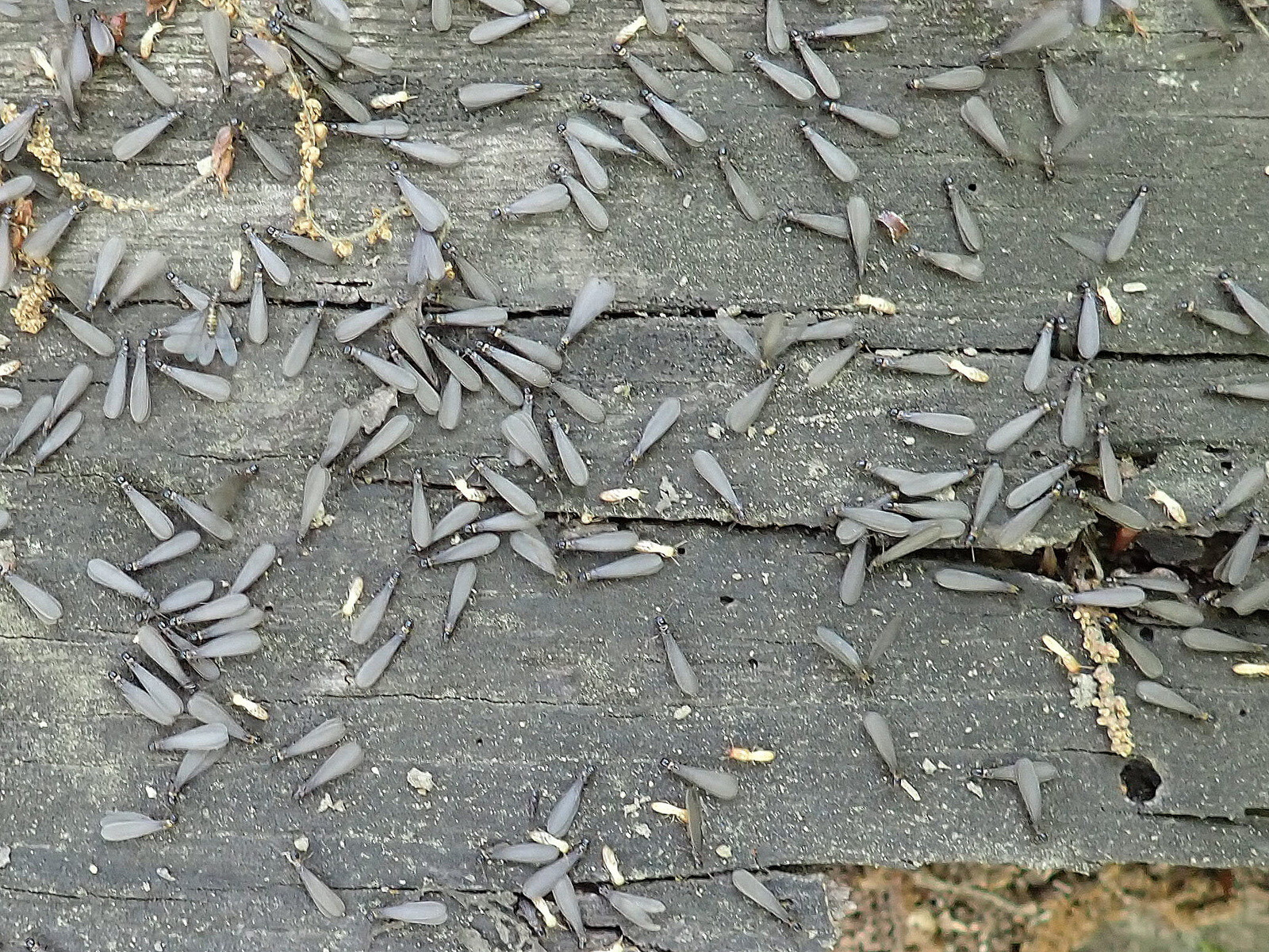 ※ベンチに使っていた朽ちたコナラから、お昼頃、ヤマトシロアリ(ゴキブリ目・ミゾガシラシロアリ科)の羽アリが次々と飛びたっていきました。